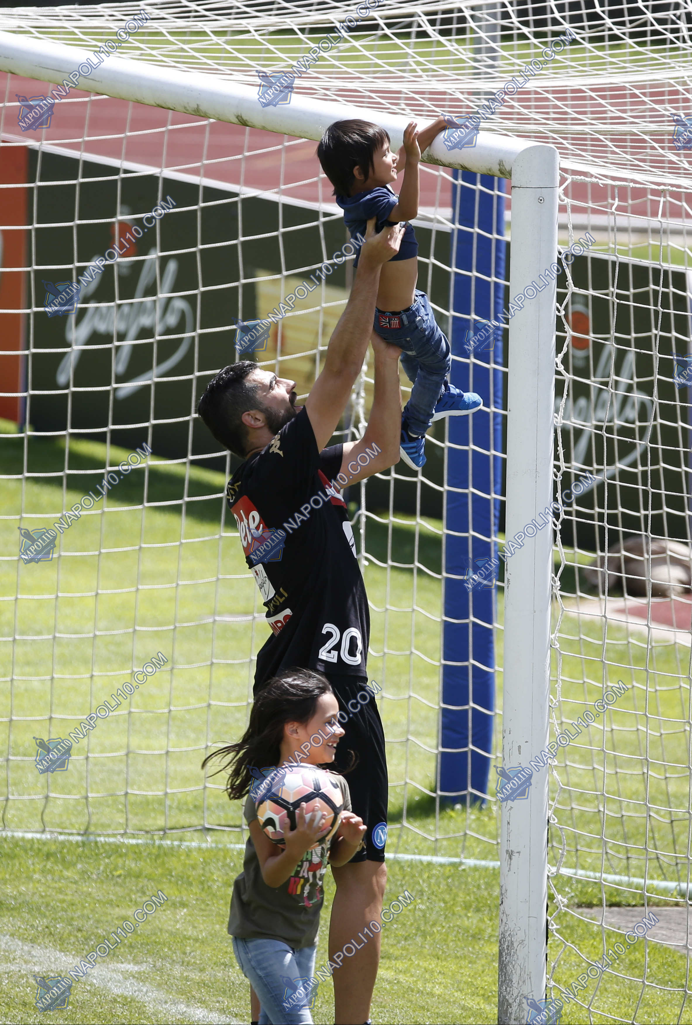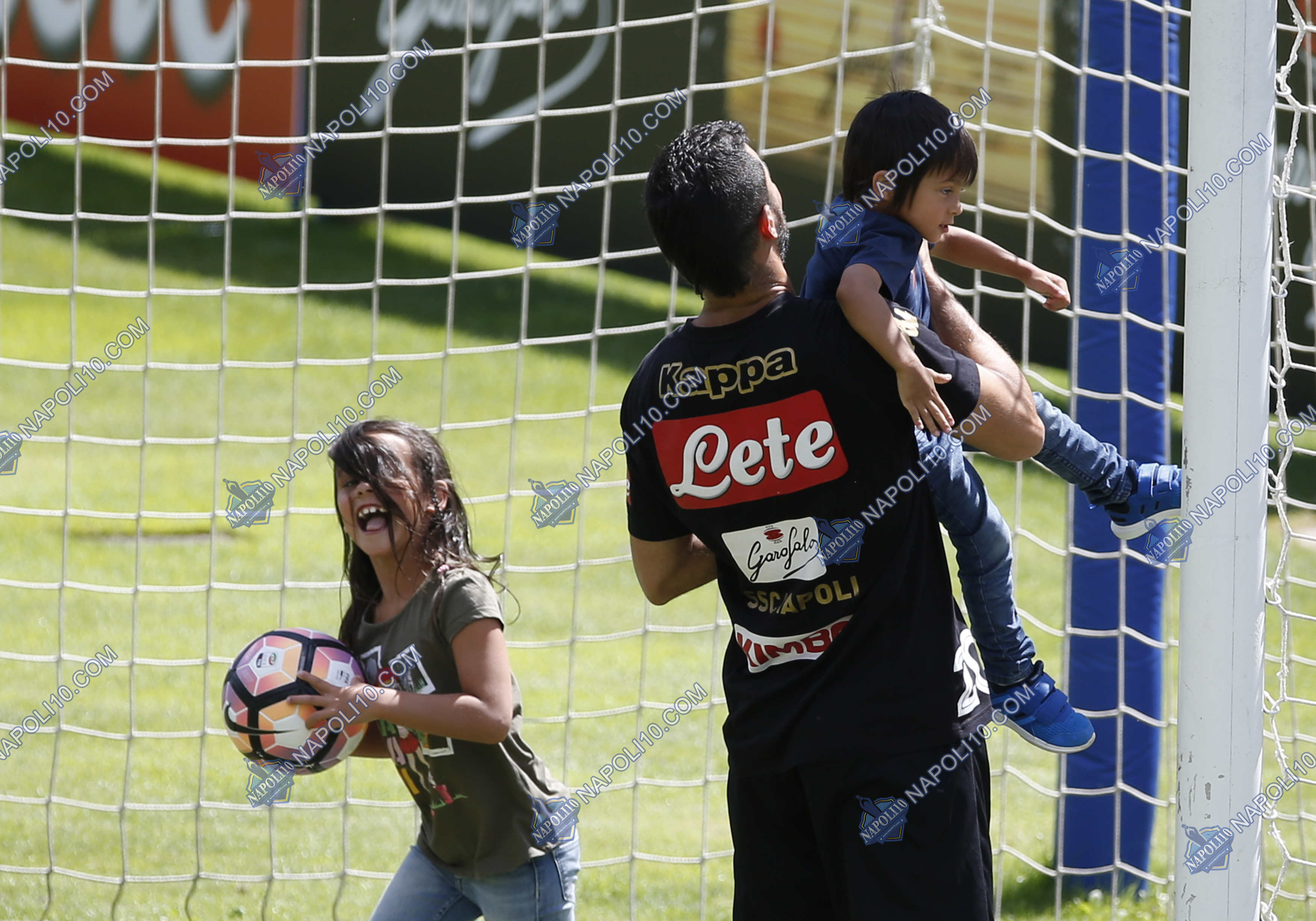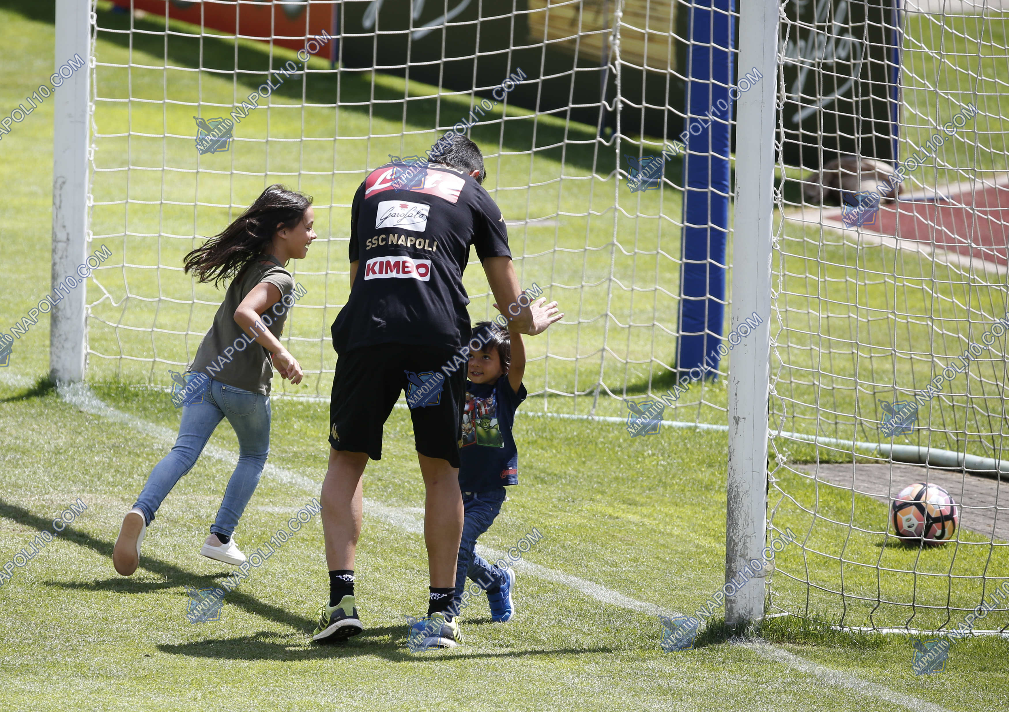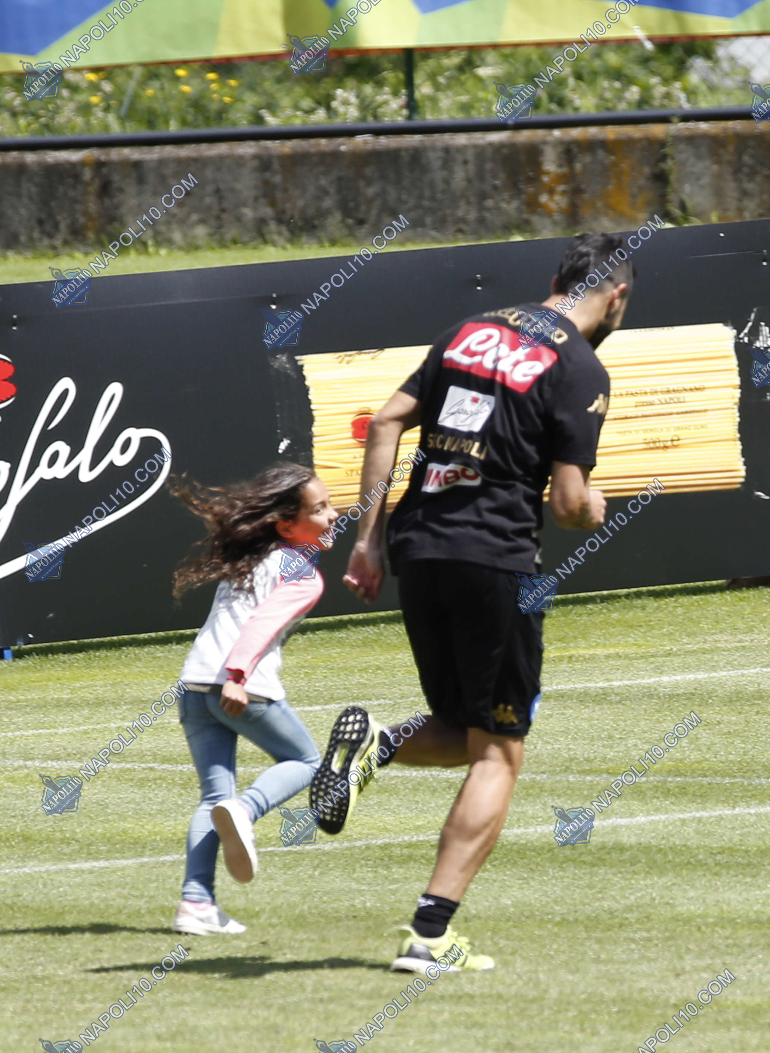 Jose Callejon "ruba" borsa al fotograforaoul albiol gioca con i figli 12 durante il ritiro precampionato del SSC Napoli a dimaro 15 luglio 2016
