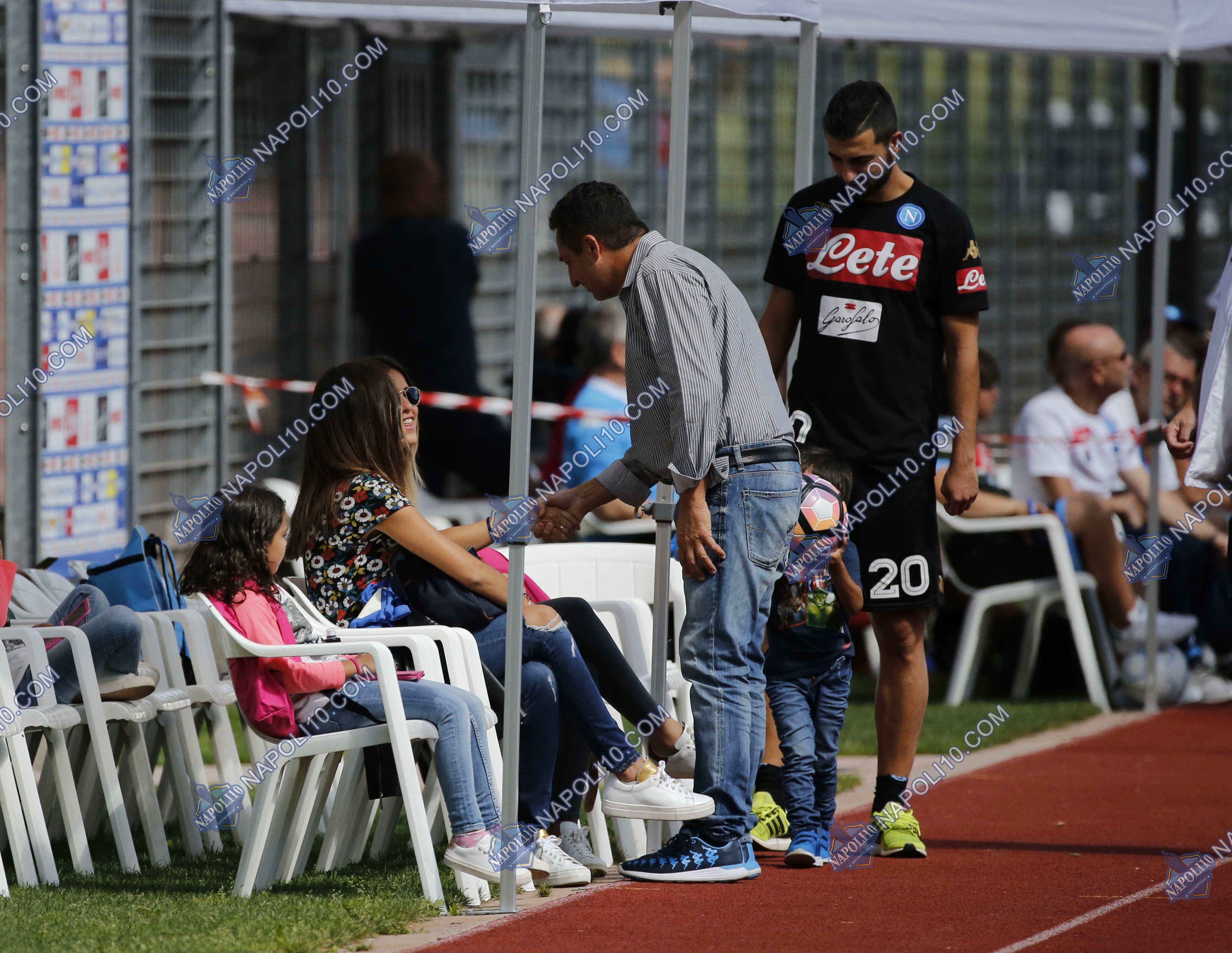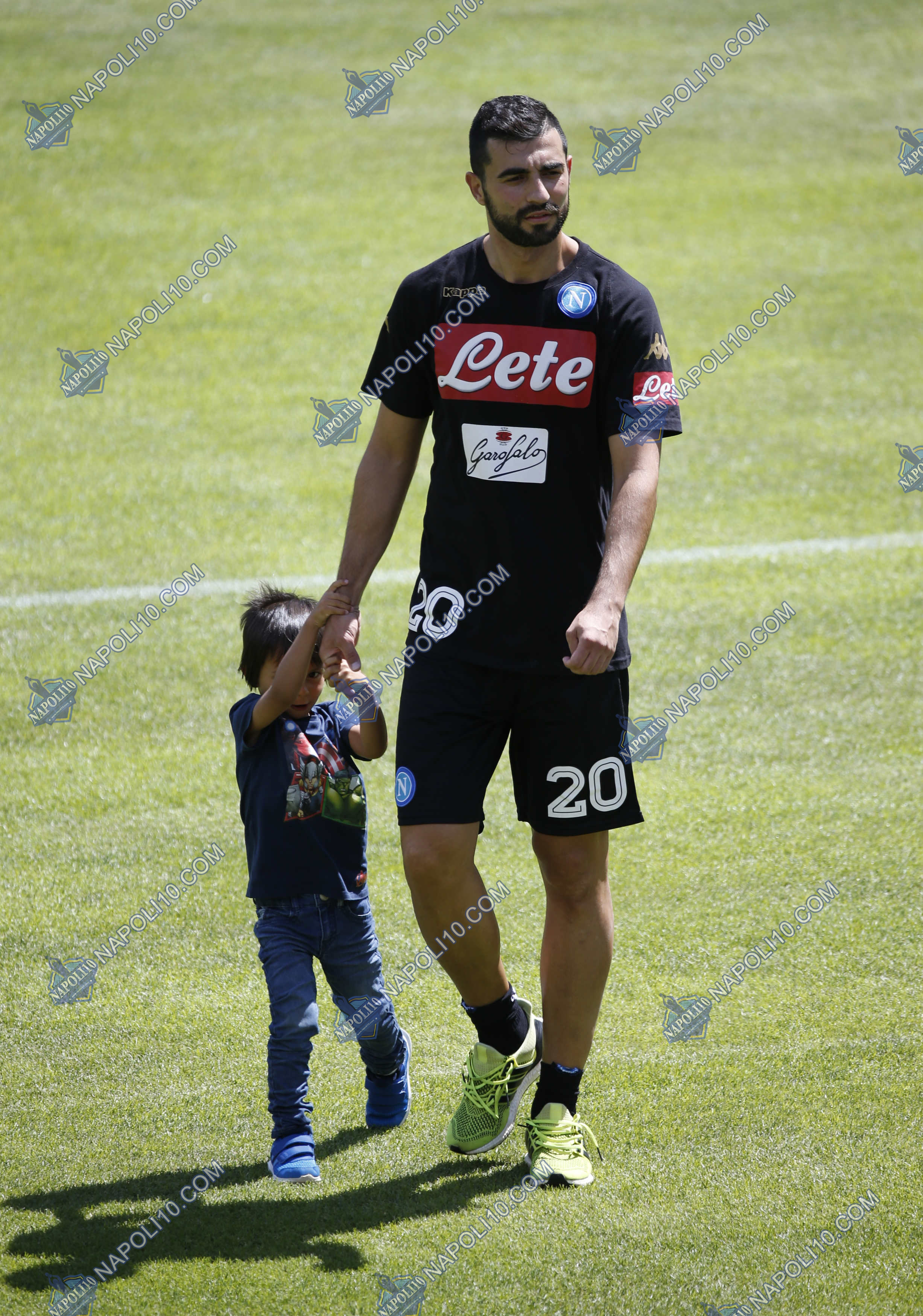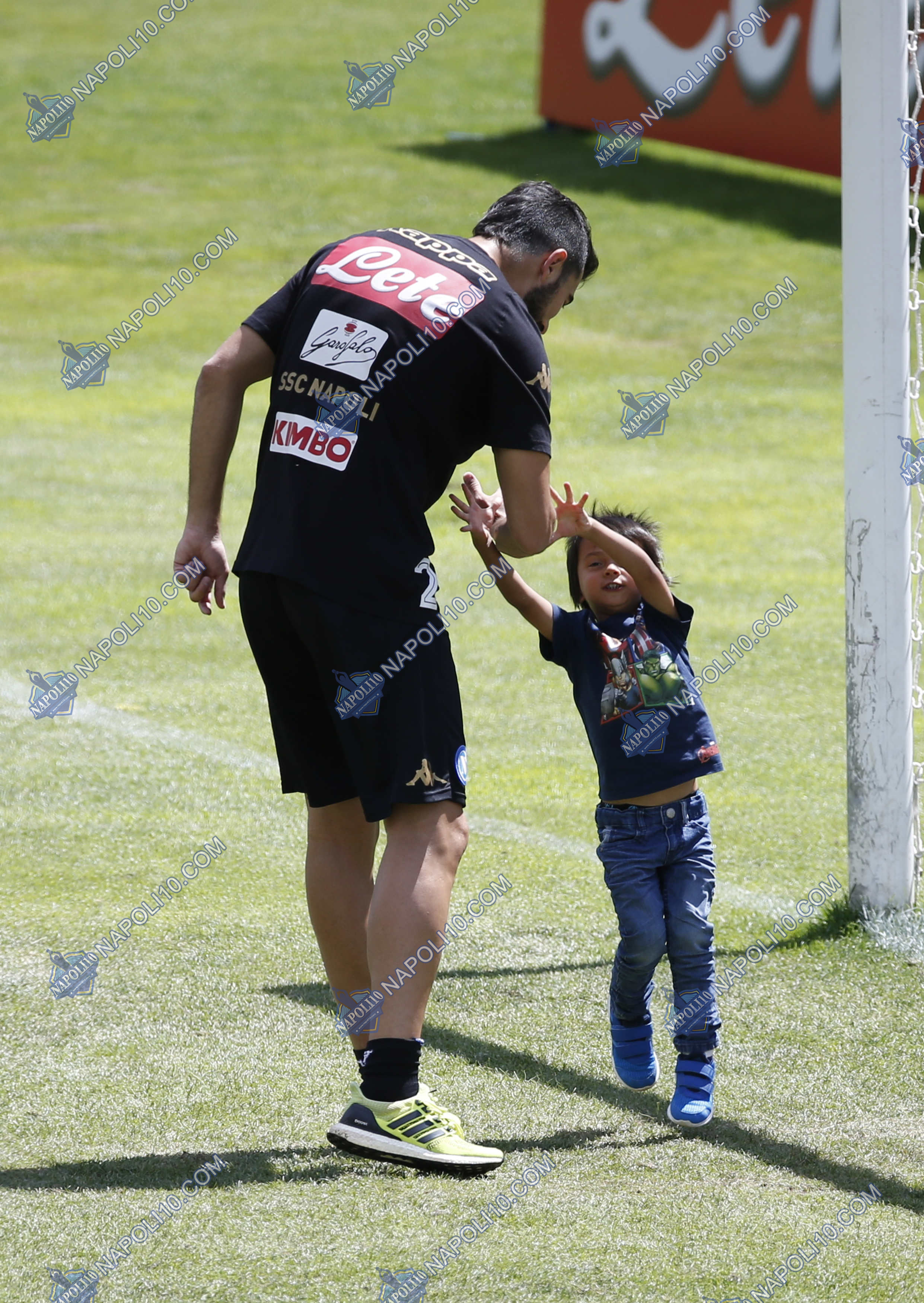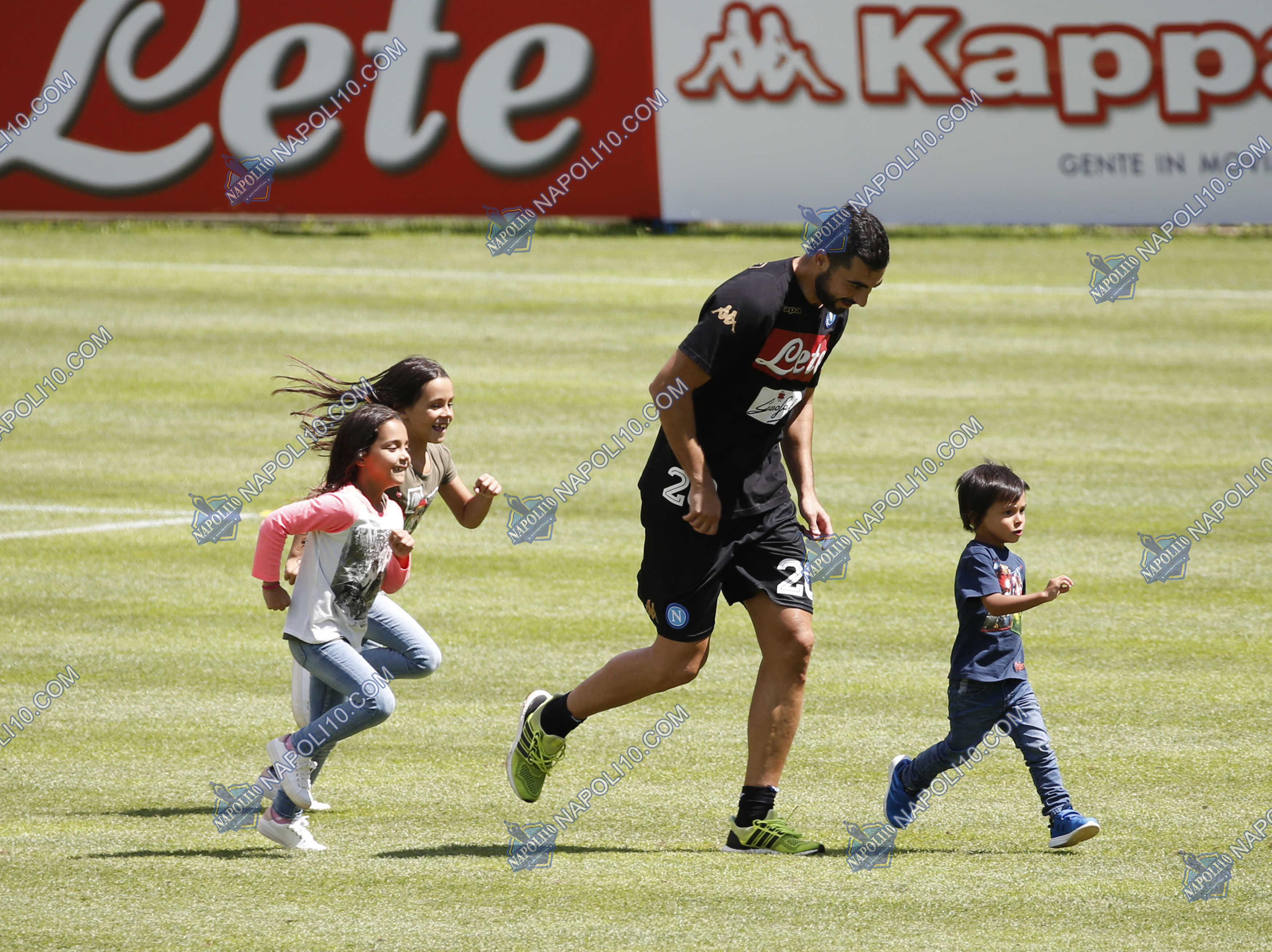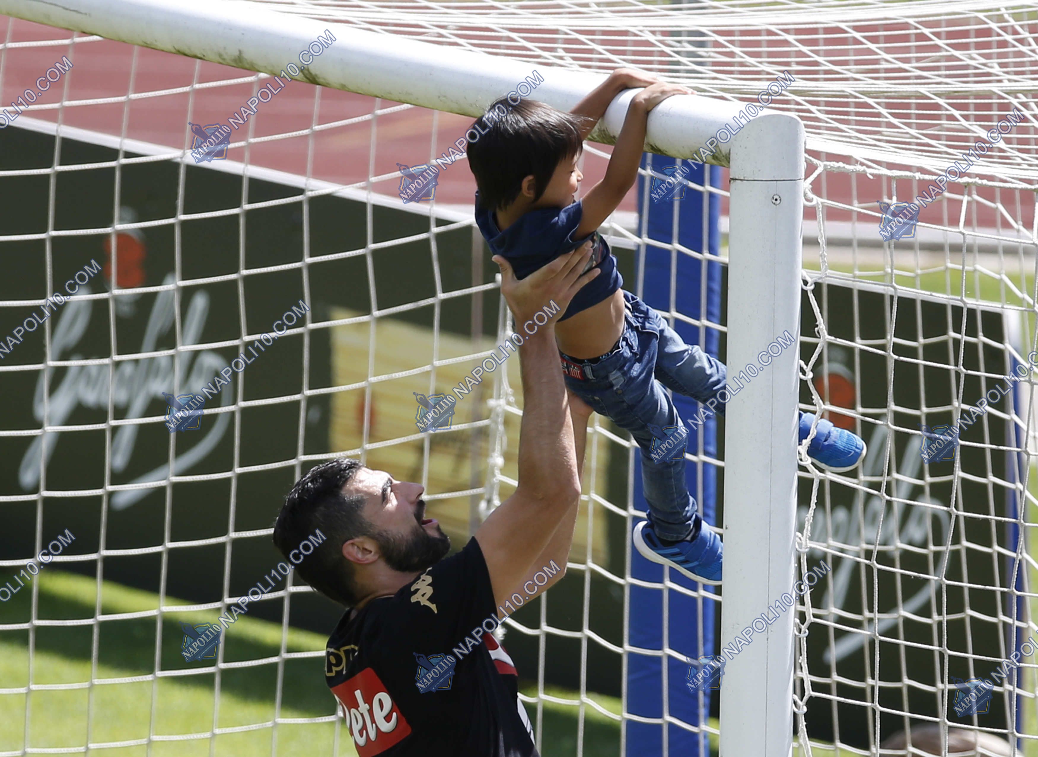 Jose Callejon "ruba" borsa al fotograforaoul albiol gioca con i figli 12 durante il ritiro precampionato del SSC Napoli a dimaro 15 luglio 2016