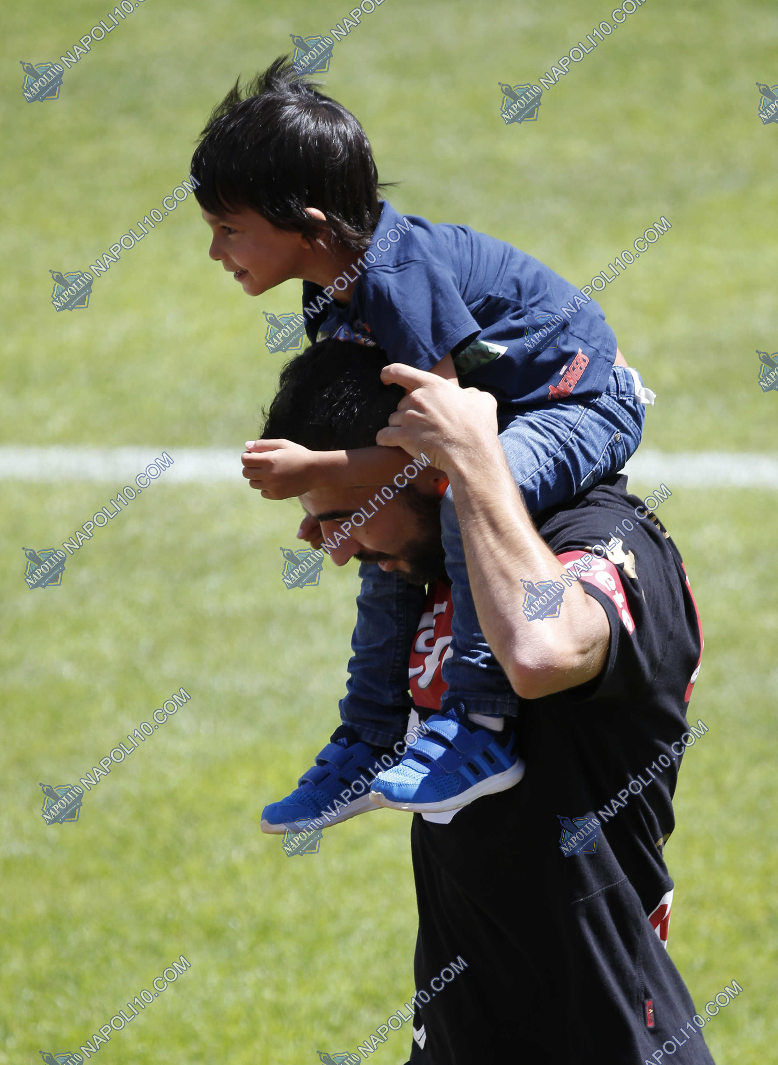Raul Albiol gioca insieme ai figli sul campo di Dimaro durante il ritiro precampionato del SSC Napoli 15 luglio 2016