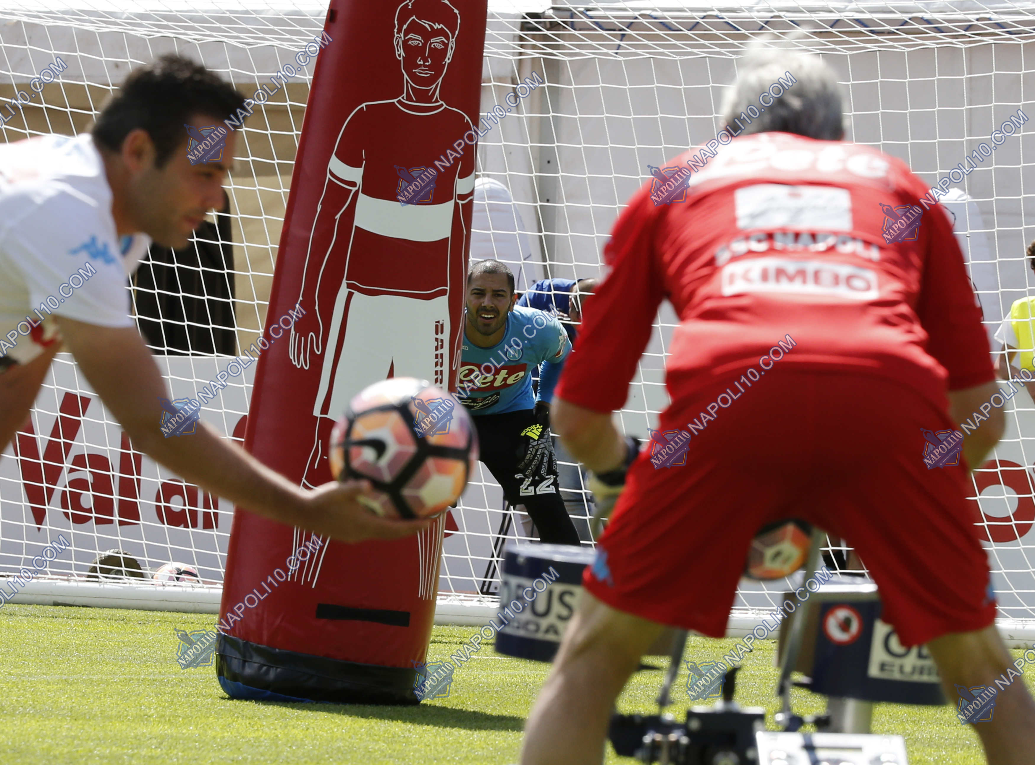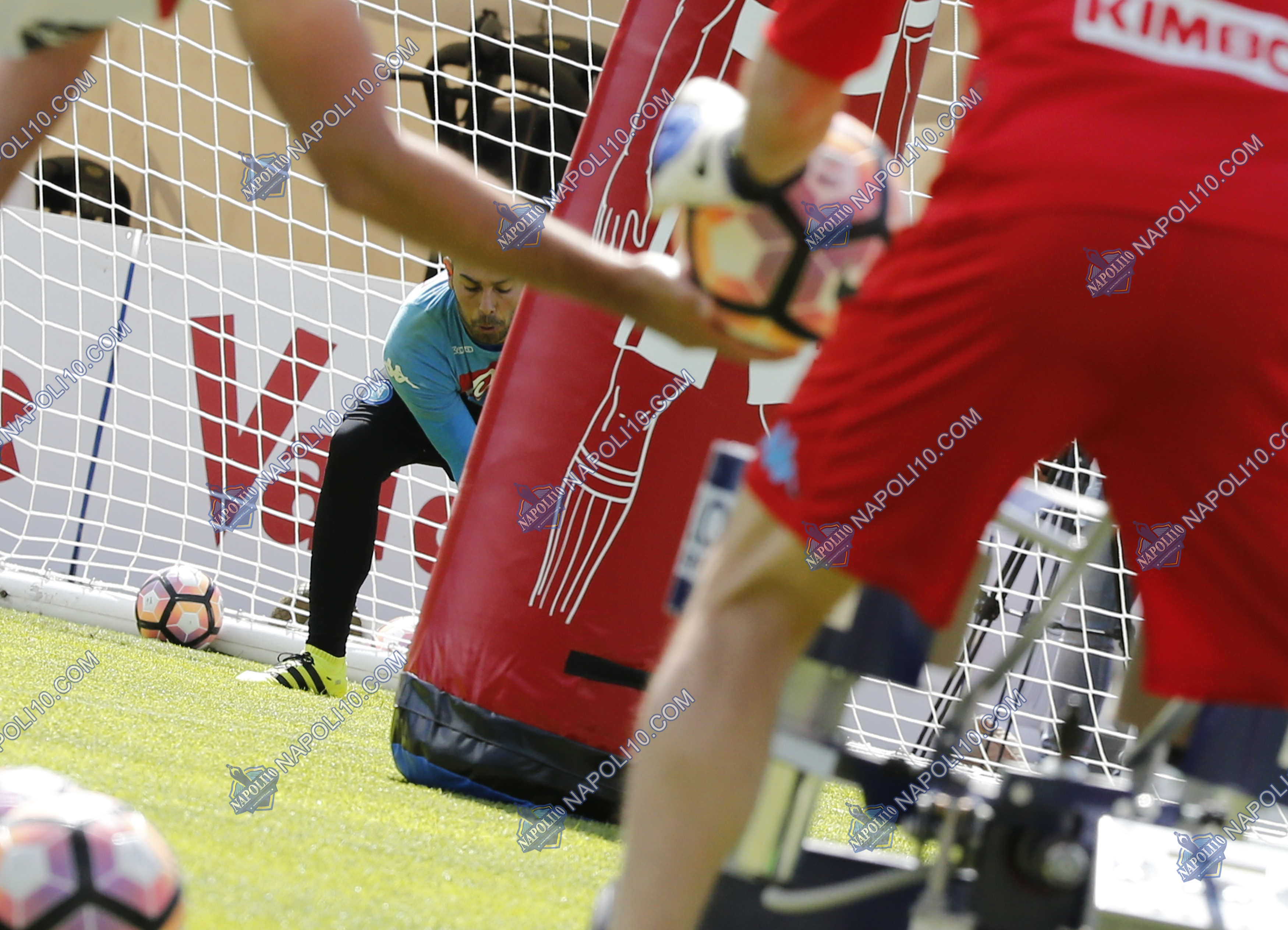 Momento molto importante arriva quanto è il turno della prova dei movimenti della difesa sui calci d’angolo e calci piazzati sotto gli occhi di un attentissimo Maurizio Sarri. Nel frattempo Pepe Reina si allena a parte, come nei giorni passati. Dopo aver parlato con il gruppo al termine delle esercitazioni sui calci piazzati, la squadra si allena con i tiri da fuori area, sotto gli applausi e l’entusiasmo del pubblico che acclama soprattutto Maurizio Sarri. Al lato del campo, scambi dalla lunga distanza e scambi di gioco per Koulibaly e Ghoulam, mentre il giovane portiere Contini risponde bene alla prova della macchina spara-palloni.