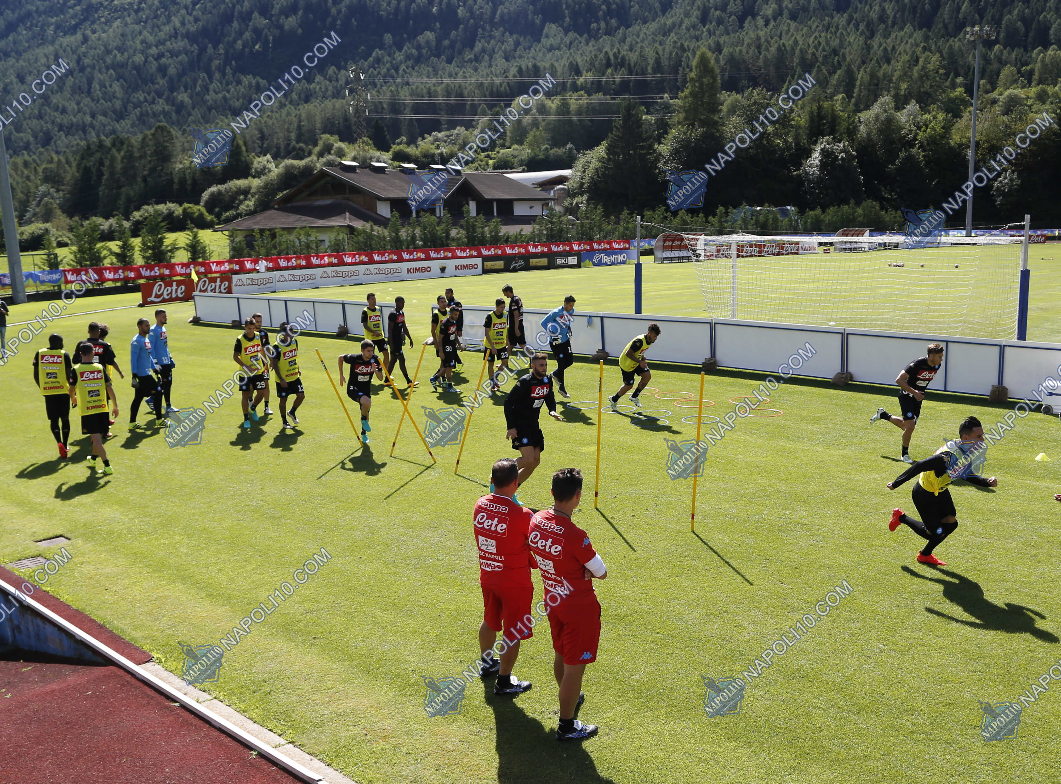 Il settimo giorno di allenamento a Dimaro Folgarida comincia in una mattinata abbastanza fredda, agli ordini di Maurizio Sarri, che deve fare a meno di Pepe Reina, Raul Albiol, Lorenzo Tonelli e Vlad Chiriches (solo palestra per i due difensori), ai quali si è aggiunto Jonathan De Guzman, infortunatosi e i cui esami hanno evidenziato una distrazione di primo grado al bicipite femorale della gamba destra. Dopo l’iniziale torello che ha coinvolto tutto il resto del gruppo e nel quale soprattutto Callejon si è mostrato tra i più in forma (da applausi un tunnel di tacco al povero Sepe), la squadra si è dedicata a un lavoro atletico alle spalle di una delle due porte. Successivamente arriva il momento di una esercitazione tattica a tutto campo, mentre Sepe e Rafael si esercitano in una metà campo con lo spara-palloni, nell’altra il mister prova i movimenti difensivi sui calci piazzati.
