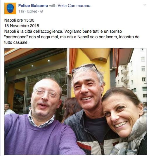 Eh già, sarà pace fatta fra Massimo Giletti e la città di Napoli? Beh, dal selfie con Giletti postato in rete da Felice Balsamo, collaboratore stretto di de Magistris, dove si mostra in compagnia di Velia Cammarano, fotografa ufficiale dell’ufficio stampa della giunta comunale, e in mezzo il conduttore Rai, tutti sorridenti, bene si direbbe proprio che sia tornato il sereno. Nella foto tutti e tre belli sorridenti e con il commento di Balsamo che scrive: “Napoli è la città dell’accoglienza. Vogliamo bene a tutti e un sorriso partenopeo non si nega mai, ma era a Napoli solo per Lavoro, incontro del tutto casuale”. Sarà veramente così? Un incontro casuale, oppure c’è stato un incontro tra Giletti e il sindaco per chiarire le cose? Mah, per ora resta il mistero.