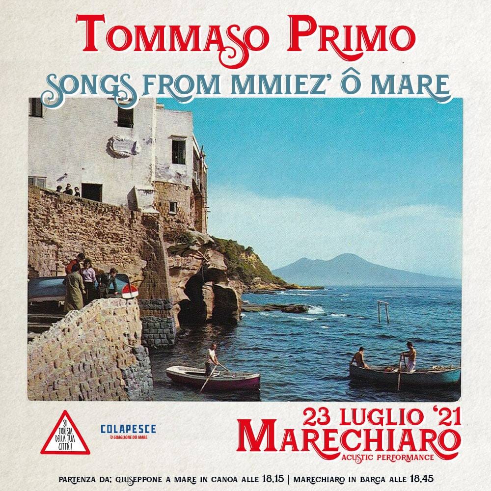 Sii Turista Della Tua Città – Marechiaro, il piccolo borgo di pescatori in cui vive Tommaso Primo, culla di storie, leggende e aneddoti, di madonne e processioni marine. Farà un concerto al tramonto, quando il sole cade nell’acqua, chitarra, voce e violino, completamente in acustico e in mezzo al mare.