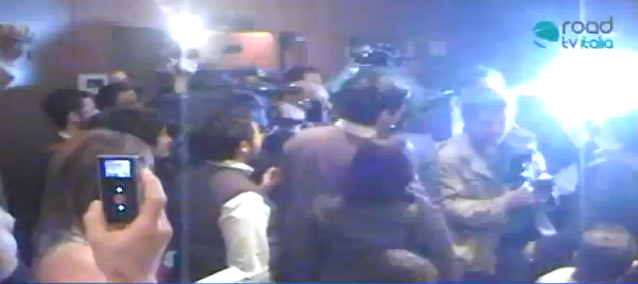 La sala stampa è strapiena, de Magistris inizia a parlare con un pò di ritardo. causa le numerose televisioni presenti che cercano di accaparrarsi un posto in prima fila.