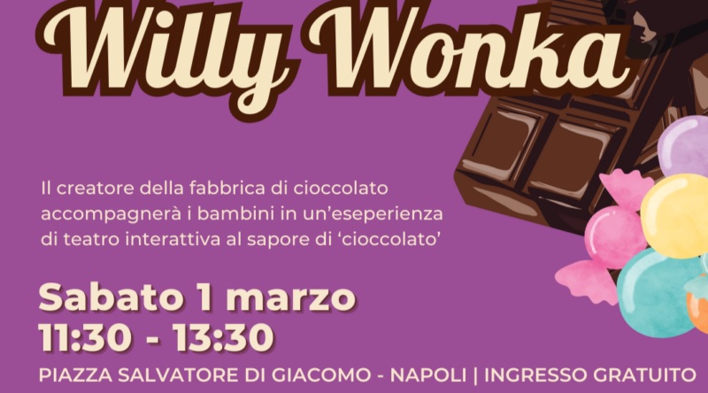 Ogni momento sarà arricchito da coreografie coinvolgenti, che permetteranno ai bambini di esprimersi liberamente e divertirsi in un’atmosfera festosa e gioiosa. Sarà un’esperienza indimenticabile, dove il cioccolato non è solo un dolce, ma un vero e proprio viaggio nel mondo dell’immaginazione! Lo spettacolo a cura di Alessandro Esposito, Daniela Gentili e Martina Esposito è interpretato da Alessandro Esposito, Martina Esposito, Rossella Migliore, Francesco Savastano e Vincenzo Cacciapuoti.