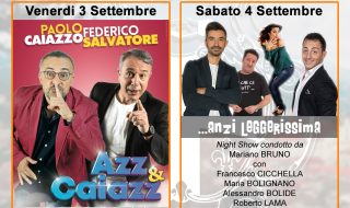 Sono due le serate organizzate per la rassegna. La prima, venerdì 3 settembre, vede andare in scena lo spettacolo “Azz & Caiazz” con protagonisti Paolo Caiazzo e Federico Salvatore. Un titolo che già lascia intendere l’omaggio affettuoso agli storici modi di dire napoletani e che comincia con: “C’eravamo noi incontrati per fatal combinazion“… e che racconterà sul palcoscenico quello che è la complicità artistica di questi due protagonisti, che giocano con la goliardia e le parole riuscendo sempre a strappare una risata allo spettatore.