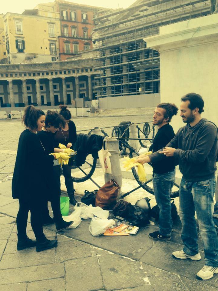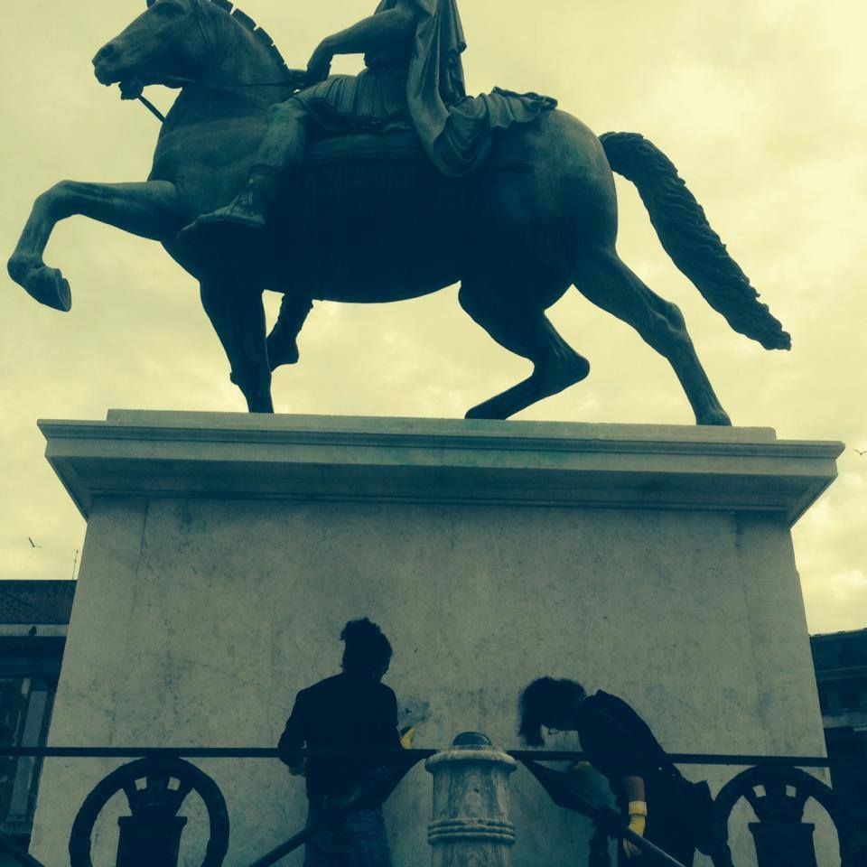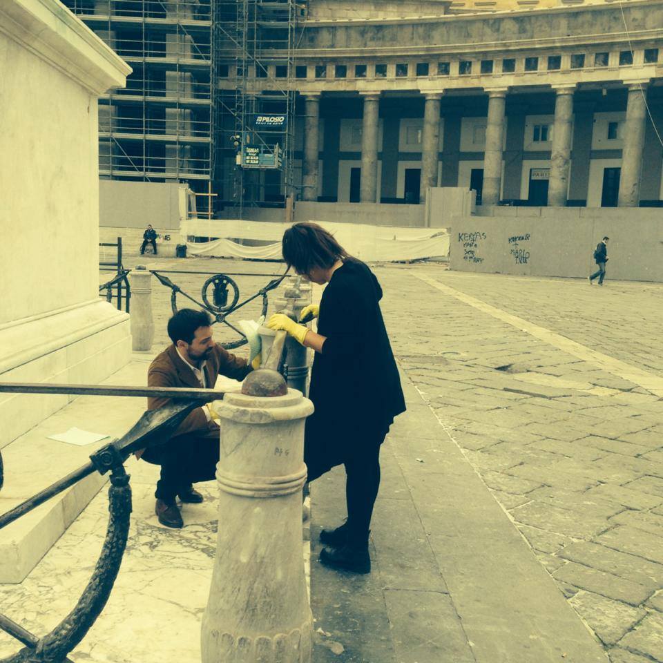 “Sii turista della tua città” ripulisce le statue equestri a piazza Plebiscito