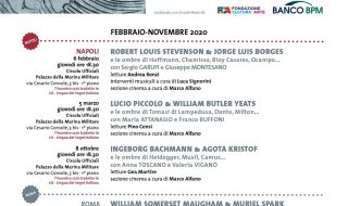 Lo slittamento delle date prevede, quindi, la ripresa di Strane Coppie ‒ quest’anno per la prima volta anche in LIS – Lingua Italiana dei Segni, con il coordinamento della traduzione a cura di Stefania Cantelmo ‒ a Napoli, giovedì 8 ottobre ore 18.30, al Circolo Ufficiali Marina Militare. Si parlerà di Ingeborg Bachmann e Agota Kristof insieme ad Anna Toscano e Valeria Viganò, con letture di Gea Martire. Sarà poi la volta di Roma, giovedì 5 novembre alle 18.30, al Palazzo Altieri dove Francesco Costa e Antonella Cilento racconteranno William Somerset Maugham e Muriel Spark, con le letture di Margherita Di Rauso. Il programma si concluderà poi a Milano, giovedì 19 novembre alle 18.30, nella Sala delle Colonne del Banco BPM, con Laura Bosio e Giorgio Amitrano sulle tracce delle ombre di Akutagawa Ryunosuke e Dino Buzzati, e le letture di Cristian Giammarini.