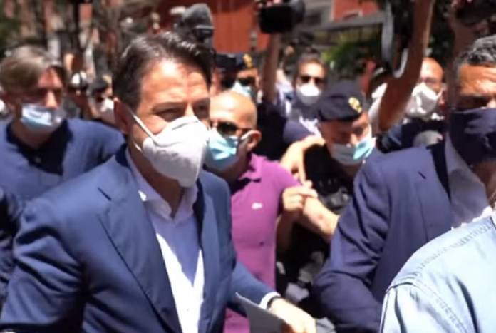 Bagno di folla per Conte nel mercatino di Fuorigrotta a Napoli