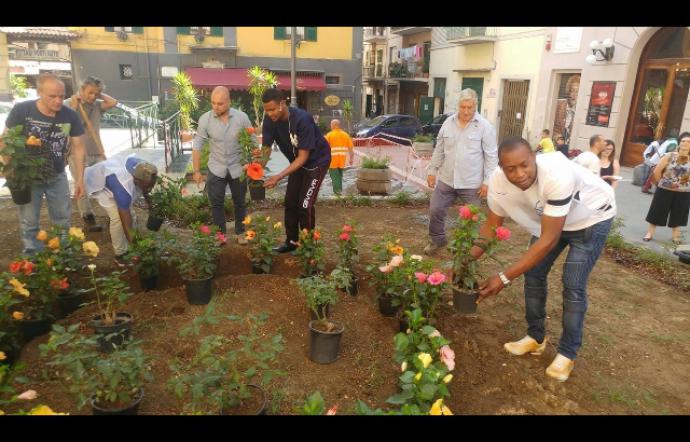 Migranti e residenti puliscono piazza
