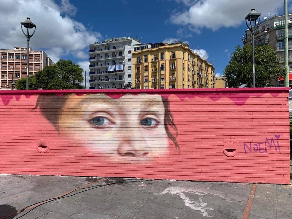 Ferita in un agguato di camorra, Noemi firma il suo murale ora riqualificato