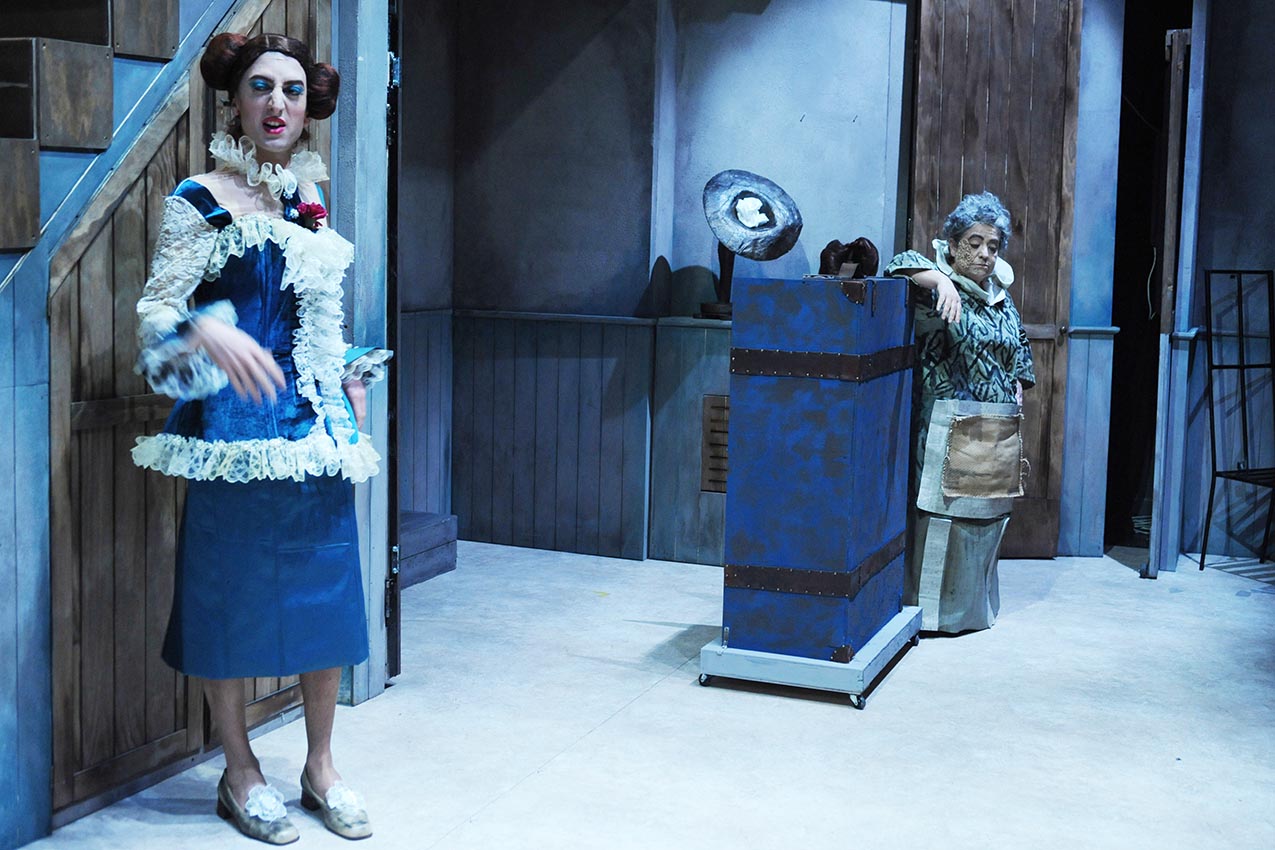 Nella fiaba, l’allampanata Anastasia e la tarchiata Genoveffa sono la quintessenza di una cattiveria che è pari soltanto alla loro bruttezza: sono brutte dentro e brutte fuori. Ma Roberto Russo e Biagio Musella ci insinuano il dubbio che la causa della loro sgradevolezza non sia meramente cromosomica, ma che sia conseguenza di un brutto vissuto, esibito come forma di protesta nei confronti di un mondo che ci pretende belli e vincenti. Con un registro squisitamente comico, Ranavuottoli si addentra nei meandri della psiche delle sorellastre, scandagliando il loro vissuto e le possibili ragioni del loro “mal di vivere” con ironia e leggerezza, utilizzando un linguaggio originalissimo che è una sorta di helzapoppin, una miscellanea in cui il registro fiabesco si fonde con quello comico grottesco.