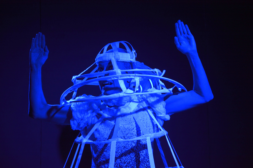 Presentato da Acts Theater, l’originale allestimento vede sul palco una donna, costretta in una gabbia in tela gommata che ricorda le strutture coniche rinascimentali a cerchi sulla quale veniva appuntata la gonna, ma che qui rimane solo di veduta per simboleggiare una donna segregata dalla sua malattia e imprigionata nel suo dolore.