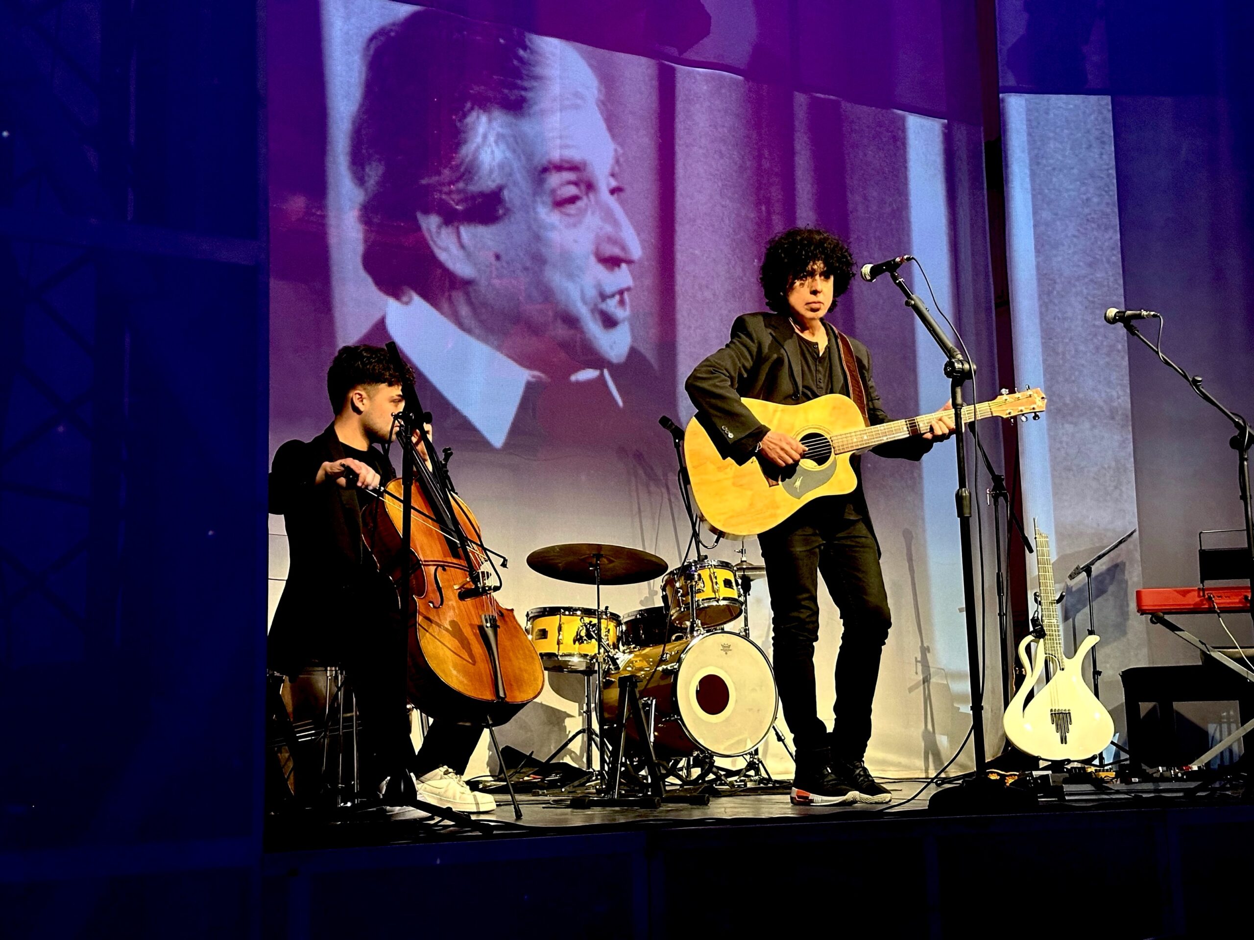 Il primo omaggio è il live acustico del cantautore Lino Blandizzi, amico e collaboratore artistico del grande maestro Sergio Bruni, apre la sua esibizione con la proiezione della poesia che Eduardo De Filippo dedicò a Bruni, “‘A voc’’e Napule” che lo stesso Blandizzi ha musicato e interpretato, poi l’emblematica e struggente “Carmela” in una originale versione acustica insieme al figlio Emanuele al violoncello, grande talento. Momento molto toccante anche il prezioso duetto con Sergio Bruni del brano “Ma dov’è”, ultimo lavoro discografico del Maestro che ha lasciato con un’emozionante documento video, proiettato per l’occasione. Inoltre Blandizzi canta “Per la mia città”, canzone che è una vera dichiarazione d’amore per Napoli, con l’introduzione recitata da Bruni di una sua poesia.