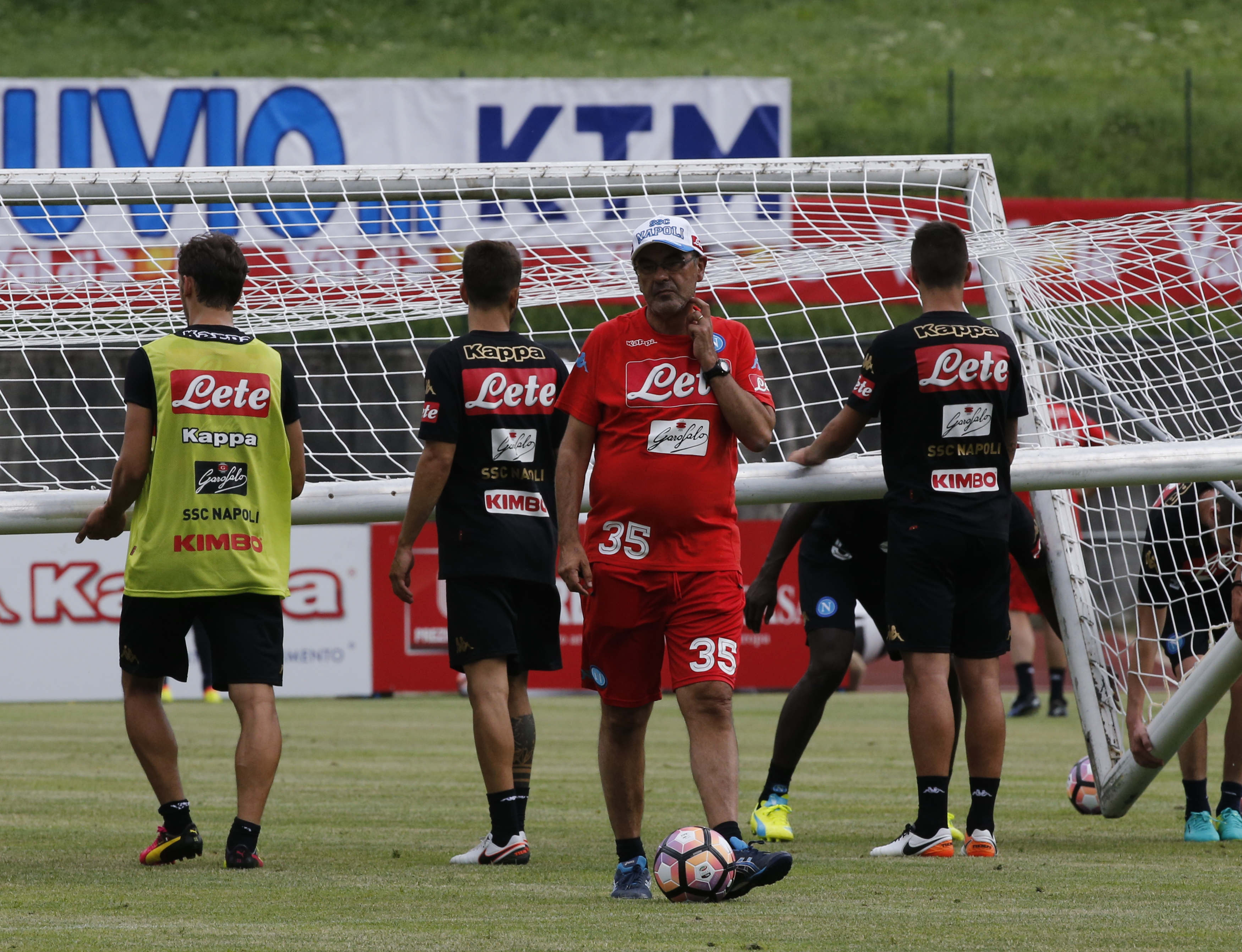 Maurizio Sarri durante una seduta di allenamento del Napoli a Dimaro per il ritiro precampionato 10 luglio 2016 training preseason SSC Napoli at dimaro Italy