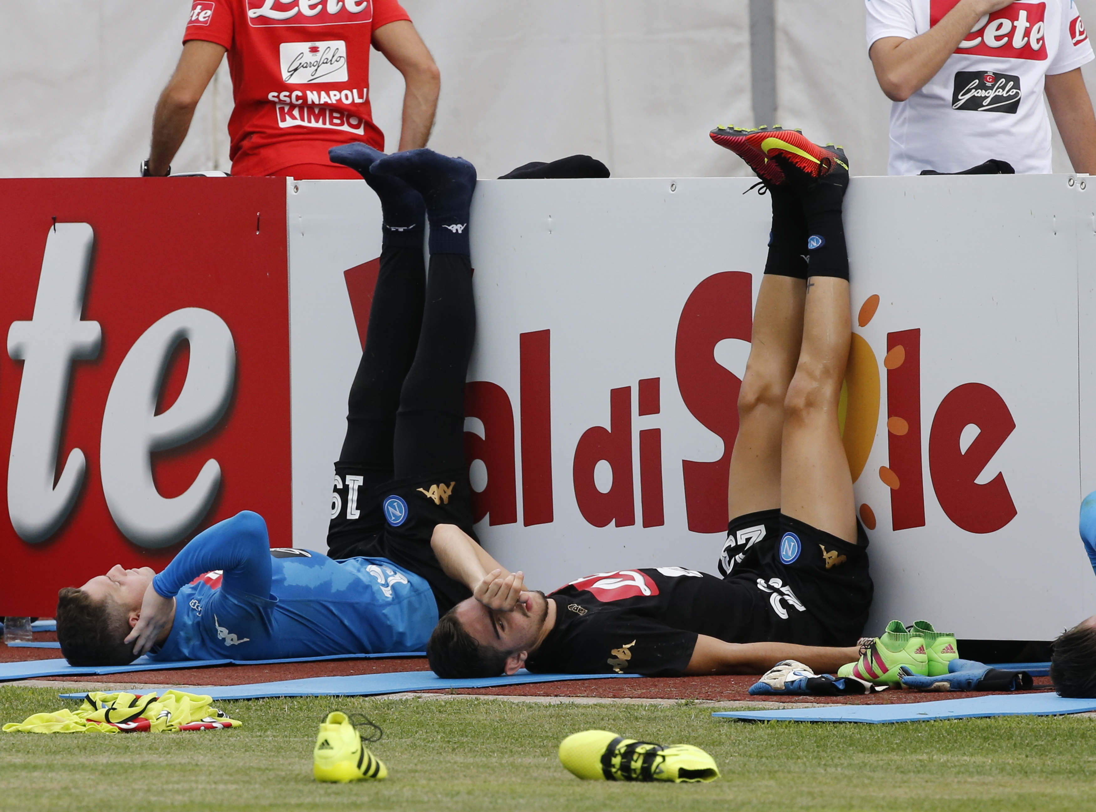 Lorenzo Tonelli e Pepe Reina durante il ritiro precampionato del SSC Napoli training preseason SSC Napoli at dimaro Italy
