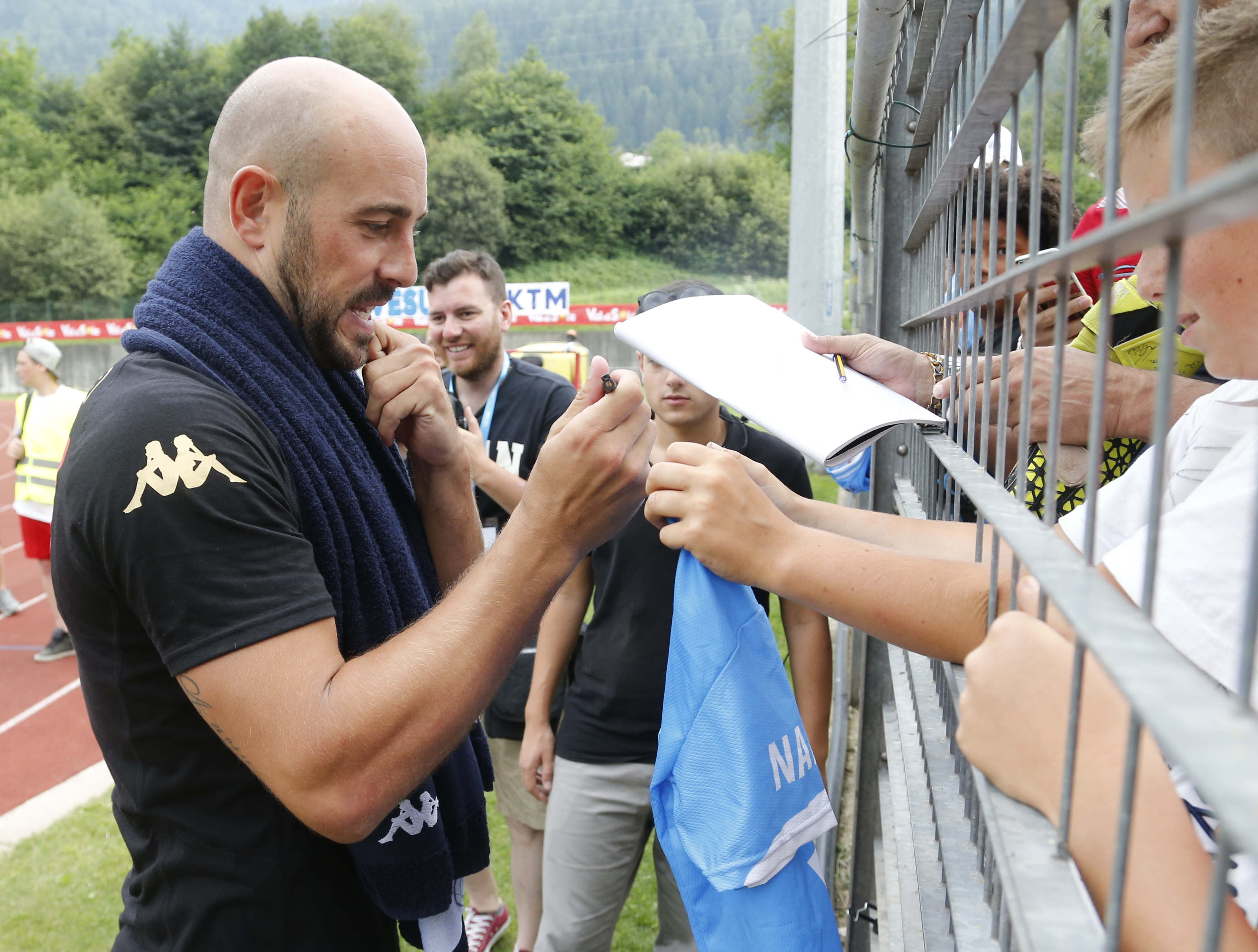 Pepe Reina firma autografi durante una seduta di allenamento del Napoli a Dimaro per il ritiro precampionato 10 luglio 2016 training preseason SSC Napoli at dimaro Italy