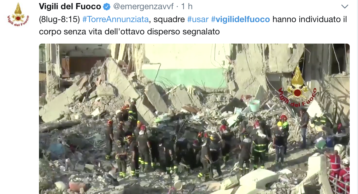Crollo palazzina Torre Annunziata – Tweet dei Vigili del Fuoco