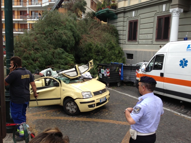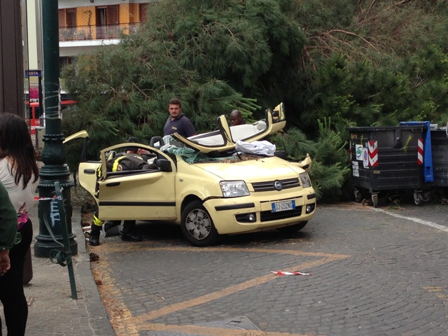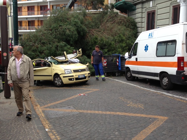 Tragedia al Vomero, esattamente a via Aniello Falcone nel quartiere Vomero, dove una donna muore schiacciata, nell’interno dell’abitacolo della sua autovettura, da un pino secolare che nel crollare invade la carreggiata.