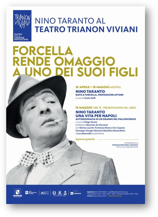 Fino a domenica 18 maggio, completa l’omaggio a Taranto del Trianon Viviani l’allestimento della mostra “Nato a Forcella, professione attore”, un percorso iconografico curato dal critico Giulio Baffi, con l’allestimento e il concept di Pino Miraglia e la ricerca di Angioletta Delli Paoli.