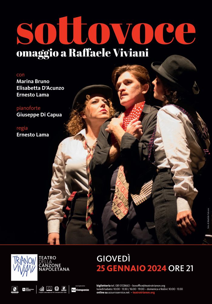 “Sottovoce. Omaggio a Raffaele Viviani” è un bozzetto in prosa e musica dei più divertenti e commoventi personaggi vivianei, diretto da Ernesto Lama.