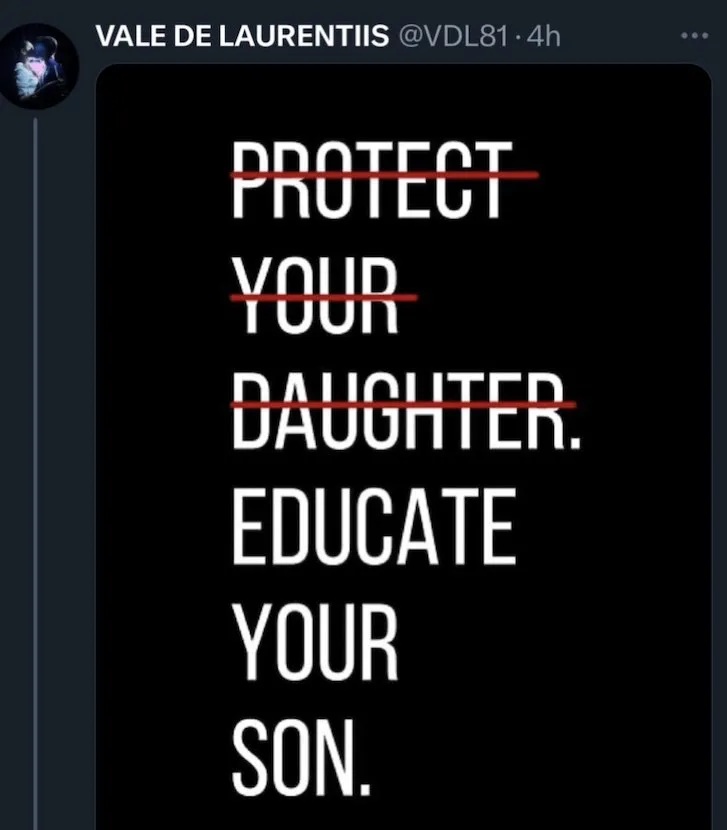 Valentina De Laurentiis, figlia del patron del Calcio Napoli, è stata costretta a chiudere il suo account Twitter (X dopo il cambiamento voluto da Elon Musk). A quanto si apprende, tutto sarebbe partito da un post pubblicato dopo gli stupri di Palermo e Caivano. Un messaggio (La scritta “Protect your daughter” cancellata, e sotto la scritta “Educate your son”) che, invece di generare soltanto consensi, ha scatenato una serie di vergognosi attacchi nei suoi confronti.