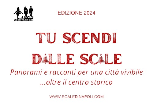 “Tu scendi dalle scale”: torna anche quest’anno la grande manifestazione voluta per onorare l’immensità delle scale di Napoli, giunta ormai alla sua tredicesima edizione. Ebbene sì, Napoli è un vero e proprio paradiso artistico e sotto tanti aspetti culturali, storici ed architettonici, alcuni più in vista, altri più curati, altri ancora più sponsorizzati … avete mai pensato però a quante scale fanno da contorno alla nostra città e al motivo della loro esistenza? La città partenopea può contare su oltre 200 scale, create ed utilizzate in passato soprattutto per collegare le zone collinari con il centro e la costa, ma anche per altri scopi, ed alcuni di essi sono tutt’oggi oggetto di studi. Ecco che da domenica 8 dicembre al 6 gennaio, attraverso ben 12 appuntamenti, si potrà assistere ad un vero e proprio percorso volto a scoprire un’altra faccia del patrimonio partenopeo, ben diversa da quella solitamente raccontata attraverso percorsi più tradizionali. Sì, perchè Napoli non è solo il centro storico o il lungomare, non si visita solo in auto o in metropolitana (lì dove si possono ammirare comunque grandi opere artistiche, magari più moderne), o, per dirla alla Edoardo Bennato, “Non è piana, non è verticale è una linea che sale in collina è una strada che parte dal mare il percorso della città obliqua…”. Napoli è un’immensità di tesori, e la maggior parte di essi sono ancora sconosciuti ai nostri occhi, è un patrimonio di paesaggi e strutture che meritano di essere vissuti e raccontati. Un esempio su tutti potrebbe essere dato dalla Pedamentina di San Martino, che collega Castel Sant’Elmo al centro storico, in un percorso attraverso cui si arriva dritti a Spaccanapoli; la salita Cacciottoli che da piazza Leonardo al Vomero taglia il tufo giallo passando sotto il ponte del Corso e proseguendo tra tipici bassi e chiesette abbandonate.