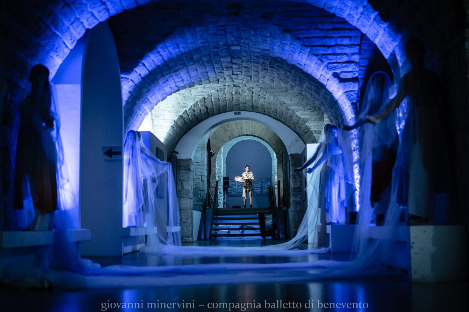 Le coreografie di Giselle Marucci ed Alessandro Amoroso e la regia di Linda Ocone. “Ambientata nelle gallerie del Museo Arcos,la performance è un approdo artistico per conoscere e valorizzare i siti architettonici più suggestivi di Benevento attraverso l’arte – ci spiega la poliedrica Carmen Castiello, sempre più musa ispiratrice degli eventi artistici e culturali in città – Danza, teatro, pittura e musica infatti riabitano luoghi dove la storia si è sedimentata ed emana tutto il suo potere evocativo. Ambienti in cui si concretizza un’alchimia tra luogo e performance, in grado di esaltare entrambi, valorizzando l’atto performativo e permettendo così alla spettatore di (ri)scoprire la città, diventando essa stessa uno spettacolo.” Un viaggio a più riprese in cui tutti hanno potuto godere dei significati personali che si è voluto ricercare. La direttrice Carmen Castiello ha voluto per il suo Balletto di Benevento una cornice a tante tinte, proprio come nella storicità della compagine e negli obiettivi e finalità di questo titolo.