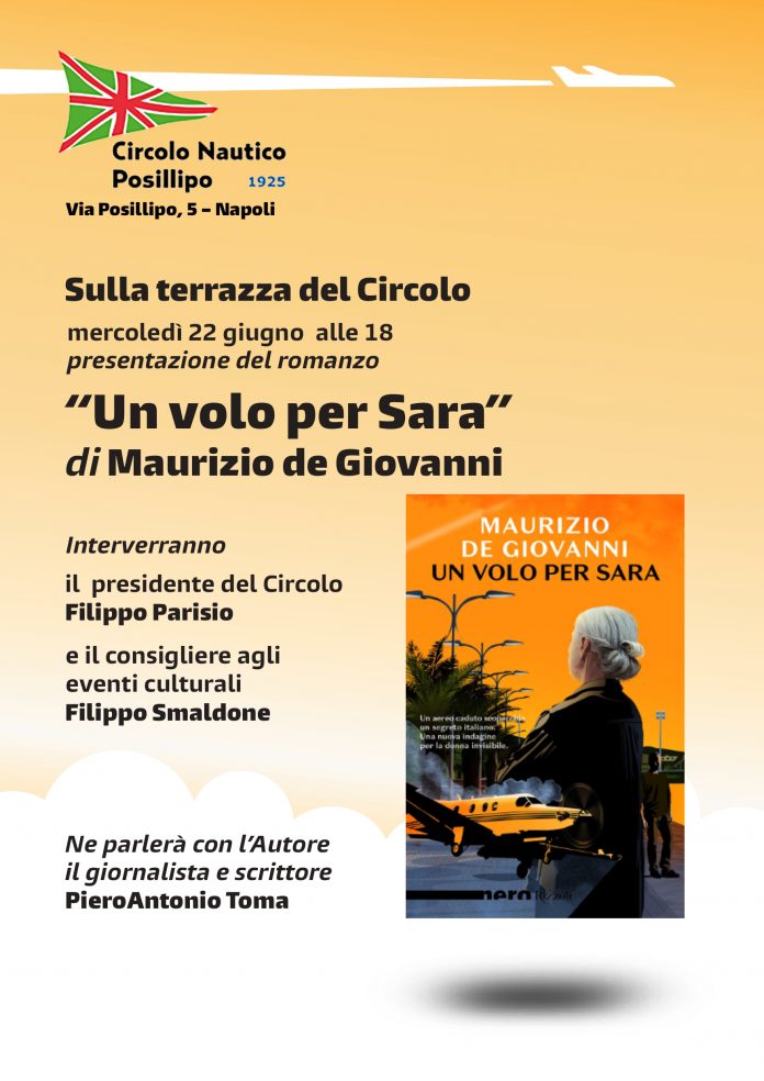 Mercoledì 22 giugno 2022, alle ore 18, presso il Circolo Nautico Posillipo, in via Posillipo 5, a Napoli, si terrà la presentazione del romanzo “Un volo per Sara”, di Maurizio de Giovanni.