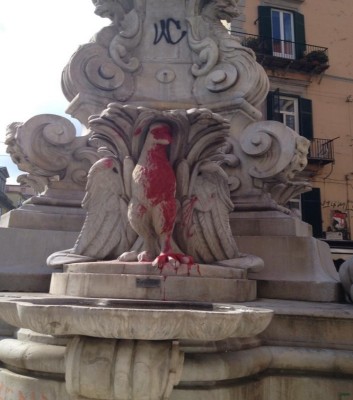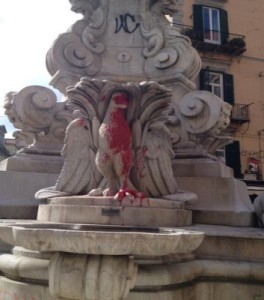 Questa notte in Piazzetta trinità Maggiore si è consumato un altro atto vandalico nei confronti di un monumento. La Fontana di Monteoliveto è stata imbrattata di vernice rossa. La denuncia arriva dal profilo Facebook del Consigliere della Seconda Municipalità, Pino De Stasio che in uno stato ammette di essere profondamente deluso riguardo all’accaduto.