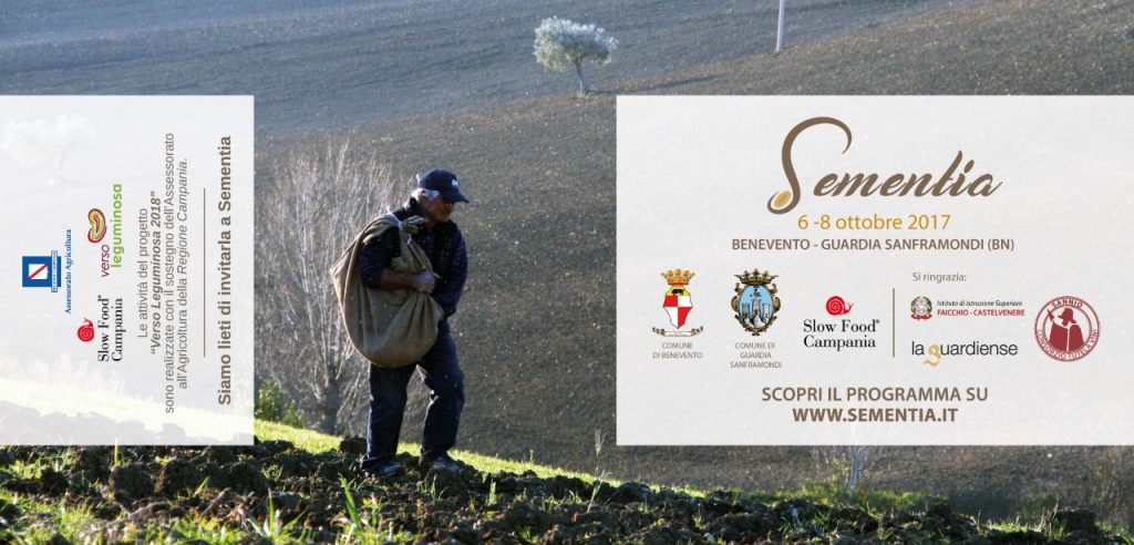 Dopo la prima edizione svoltasi nel novembre 2016, ritorna da venerdì 6 a domenica 8 ottobre 2017 Sementia, l’evento ideato dalle cinque Condotte Slow Food della provincia di Benevento e realizzato da Slow Food Campania con il contributo dell’Assessorato all’Agricoltura della Regione Campania nell’ambito del progetto “Verso Leguminosa”.