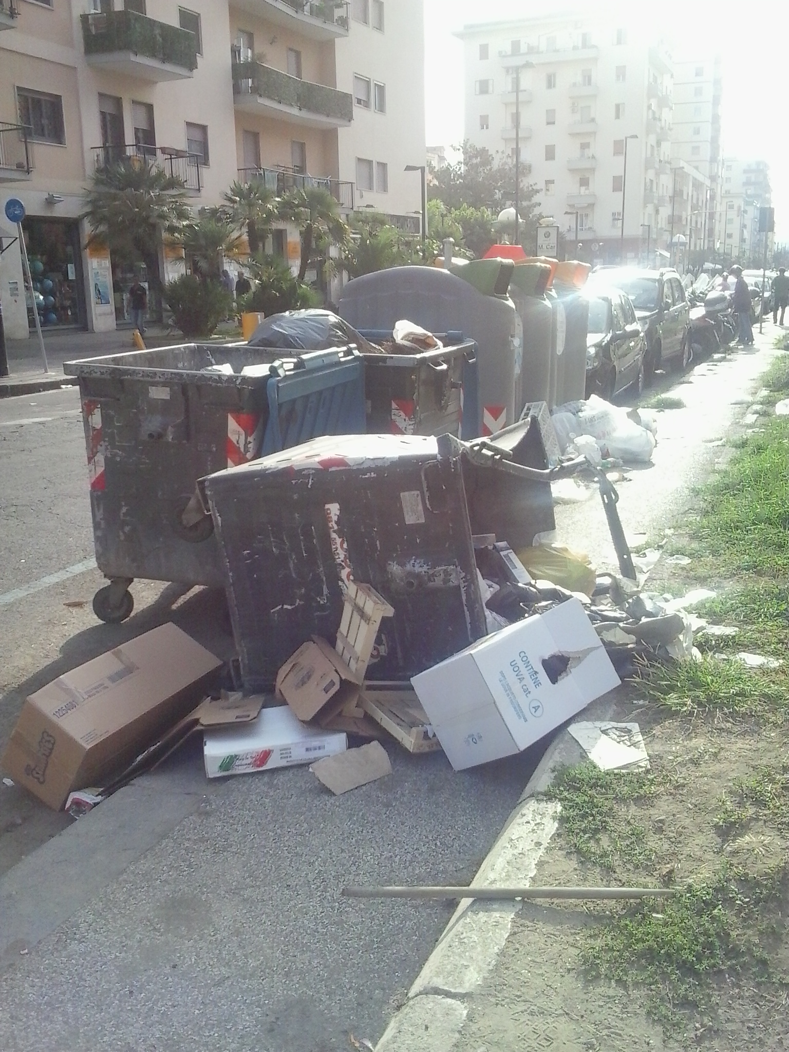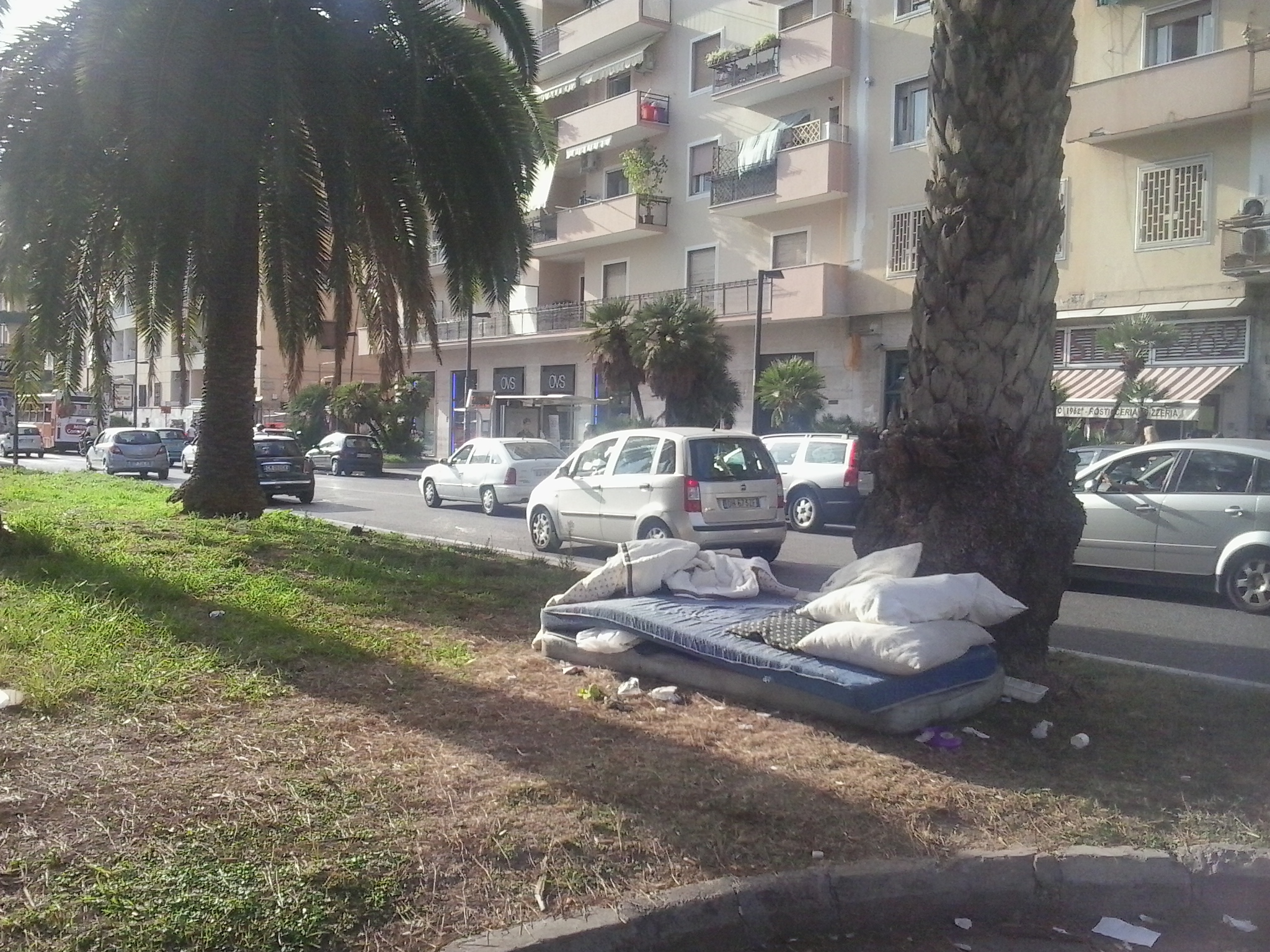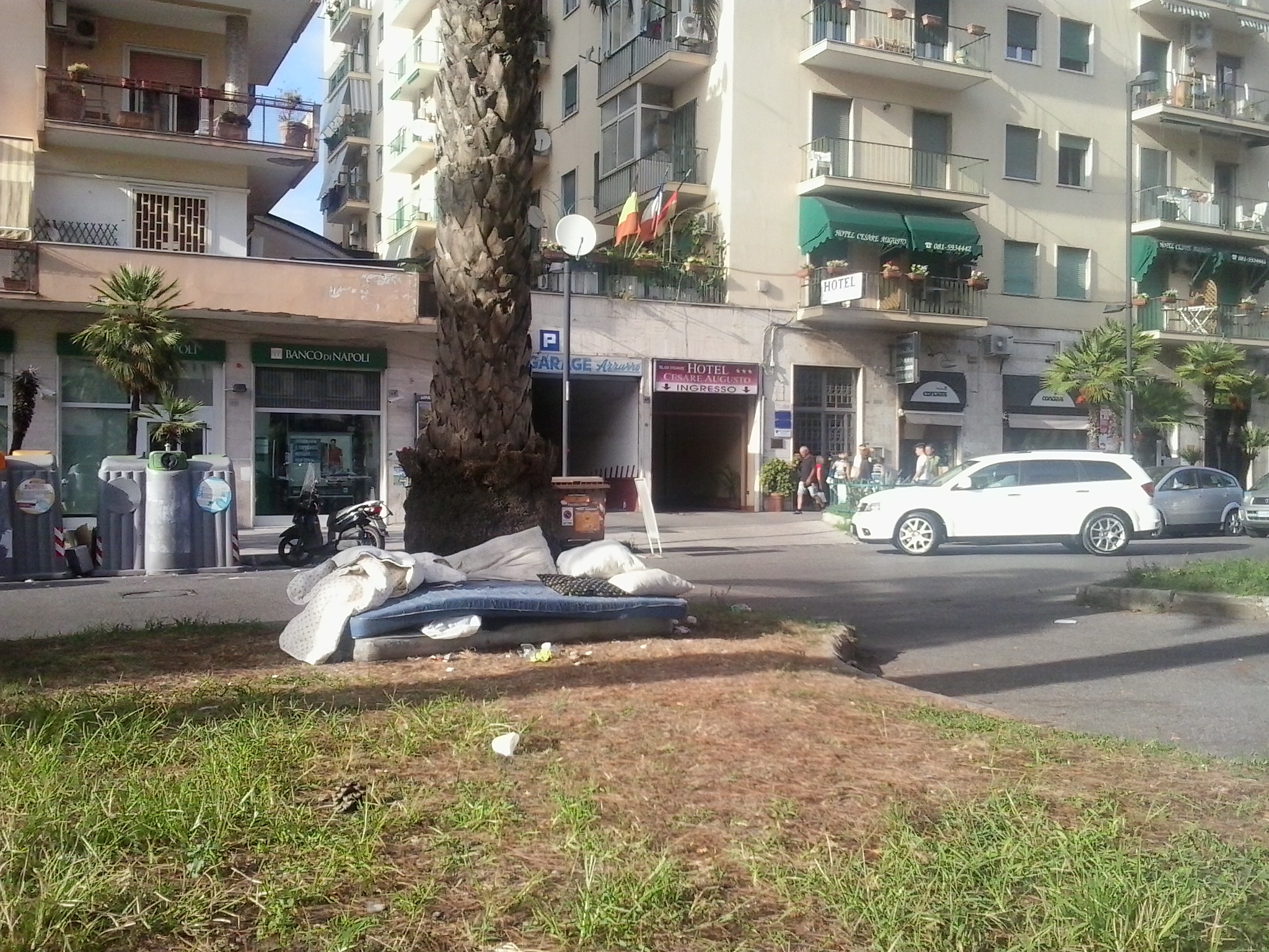 Passeggiando per Viale Augusto, nel pieno centro di Fuorigrotta, ci si può ritrovare nel bel mezzo di un albergo a cielo aperto: materassi, cuscini e plaid sono lì in bella mostra tra i giardinetti, sotto le palme. Ma non solo. Se guardiamo meglio, poi, possiamo anche incontrare cassonetti dell’immondizia pieni fino all’orlo, nelle ore più calde della giornata, e addirittura rovesciati sui marciapiedi che impediscono il transito dei pedoni. Ecco le condizioni di Viale Augusto in queste ore.