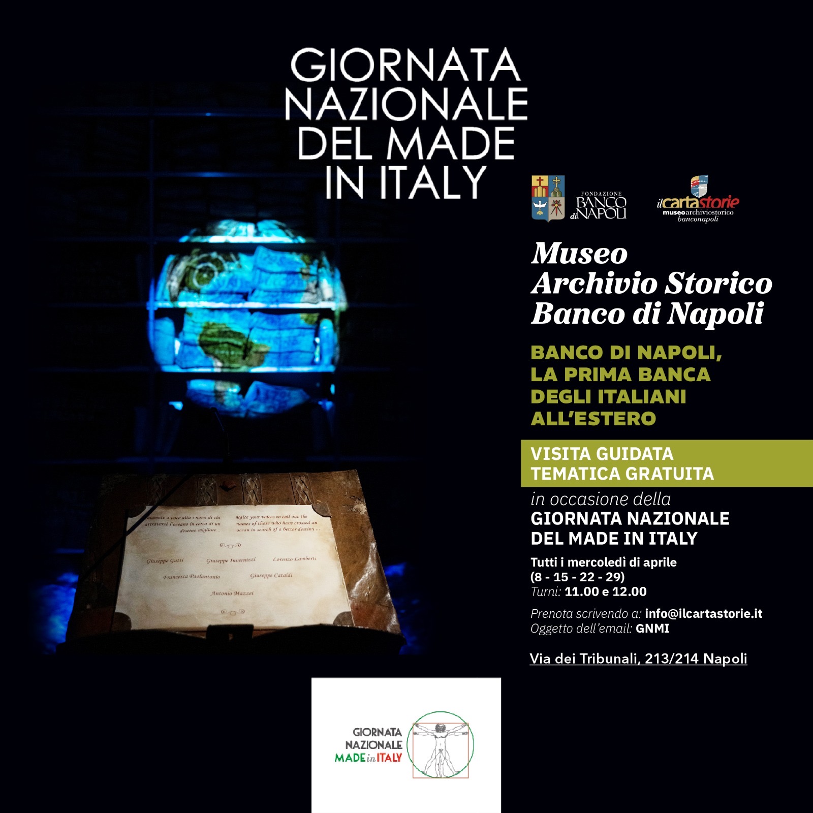 Un ciclo di visite guidate gratuite a tema, tutti i mercoledì di aprile, per celebrare l’ingegno italiano. A Napoli, dall’8 al 29 aprile, ogni mercoledì, con turni alle 11 e alle 12, nel Museo dell’Archivio Storico della Fondazione Banco Napoli, sono in programma speciali tour, dedicati a una pagina fondamentale della storia nazionale: l’emigrazione italiana e il primo sistema di tutela dei risparmi degli emigrati. L’iniziativa, legata alla giornata nazionale del Made in Italy, che si celebra il 15 aprile, è intitolata “Banco di Napoli, la prima banca degli italiani all’estero”, e si concentra sull’installazione museale dedicata al Servizio Emigrazione del Banco di Napoli dei primi decenni del Novecento, quando milioni di italiani lasciarono il Paese in cerca di fortuna oltreoceano. In questo solco, il sistema messo a punto dal Banco di Napoli, che di lì a poco avrebbe aperto filiali oltreoceano, si configura esso stesso come un autentico “biglietto da visita” dell’Italia nel mondo: un modello pionieristico di affidabilità e innovazione che, attraverso documenti originali e contenuti multimediali, la visita restituisce nella sua portata storica. «Questa iniziativa – spiega Marcello D’Aponte, Presidente della Fondazione Museo dell’Archivio Storico Banco di Napoli – è nata per celebrare la creatività e il ruolo storico delle eccellenze italiane nello sviluppo economico e culturale del Paese, e consente di rileggere una pagina cruciale della nostra storia, mettendo in luce il valore pubblico e sociale del Banco di Napoli, che ha accompagnato intere generazioni di italiani nel mondo». Individuato dal governo italiano come istituto incaricato della gestione dei flussi finanziari degli emigrati, il Banco divenne un punto di riferimento essenziale per le comunità italiane all’estero, garantendo la sicurezza delle rimesse inviate alle famiglie rimaste in patria e contrastando frodi e speculazioni, configurandosi come istituzione pubblica impegnata nella tutela sociale degli emigranti. La visita si inserisce nel più ampio percorso del museo, che racconta la storia del Banco di Napoli dalle origini come sistema dei banchi pubblici cittadini fino alla sua affermazione come grande istituzione bancaria nazionale e internazionale, mettendo in relazione l’esperienza dell’emigrazione con una tradizione secolare di credito pubblico, fiducia e servizio alla collettività.