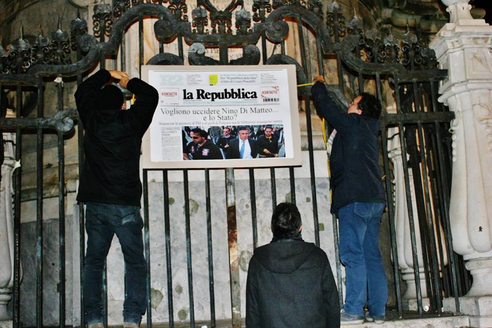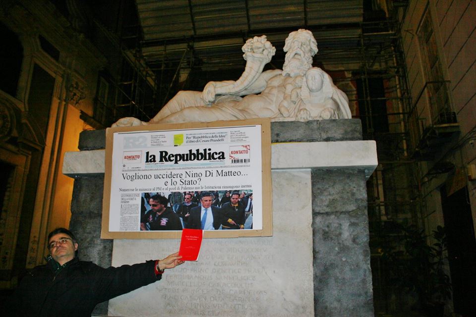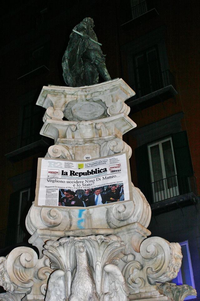 Nino Di Matteo deve essere difeso. Stamane Napoli si è svegliata incuriosendo i propri residenti. Sulle principali statue delle piazze cittadine erano presenti dei cartelloni con la scritta: “Vogliono uccidere il pm Nino di Matteo… e lo Stato?”