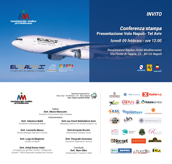Alla conferenza stampa di presentazione del volo bisettimanale Napoli-Tel Aviv del 9 febbraio saranno presenti: