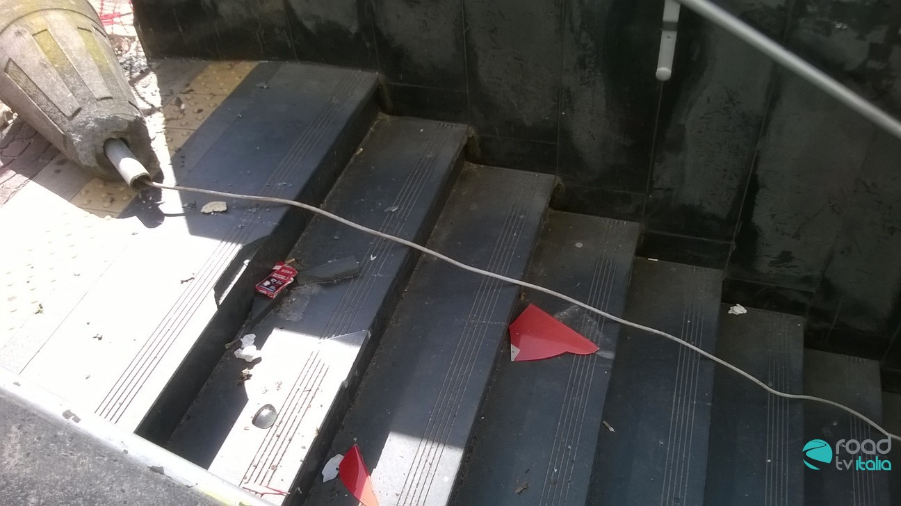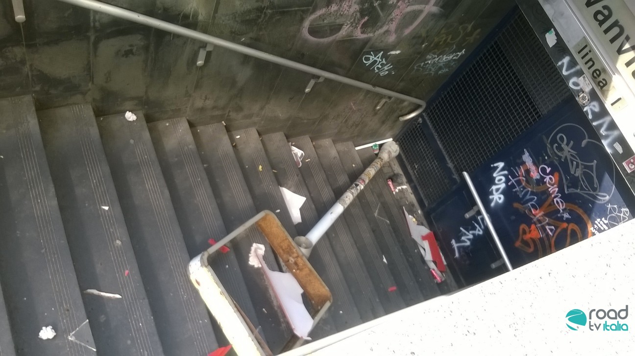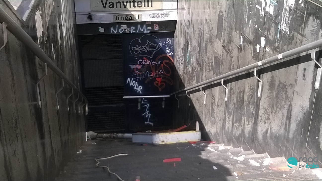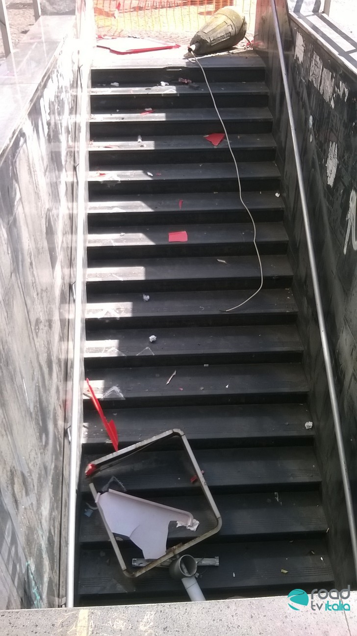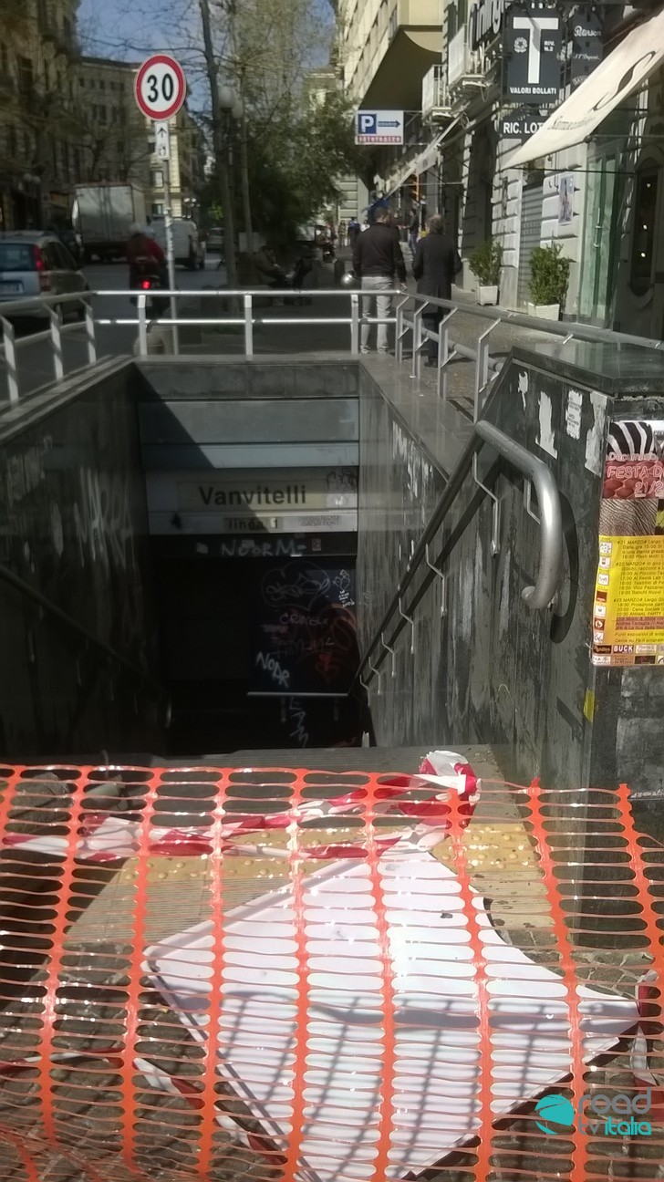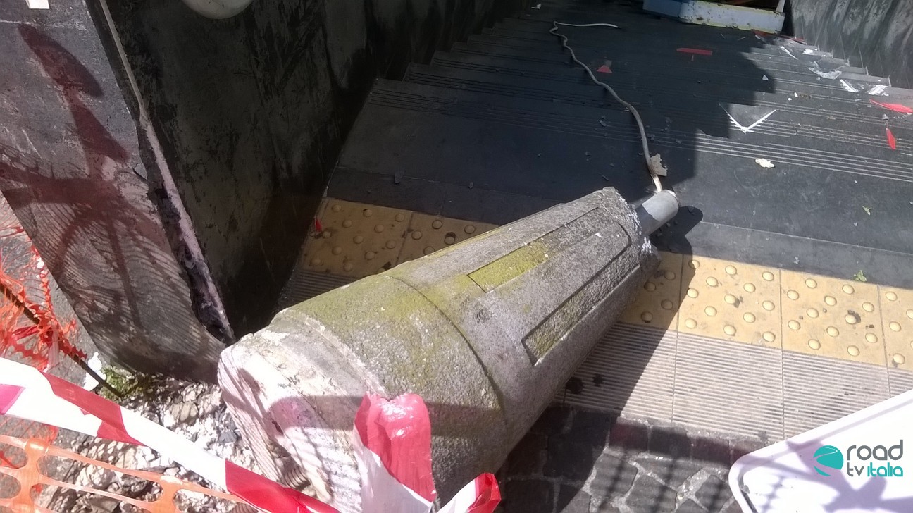 Qualche giorno fa è avvenuto un incidente d’auto nei pressi di piazza Vanvitelli. In seguito a ciò si è divelto il palo in cemento che sorreggeva il cartello con la “M” che indica l’uscita della metropolitana, andando a finire lungo le scale. La zona è stata subito recintata da fuori e sbarrata dall’interno, dove c’è il sottopassaggio che collega funicolare e metropolitana.