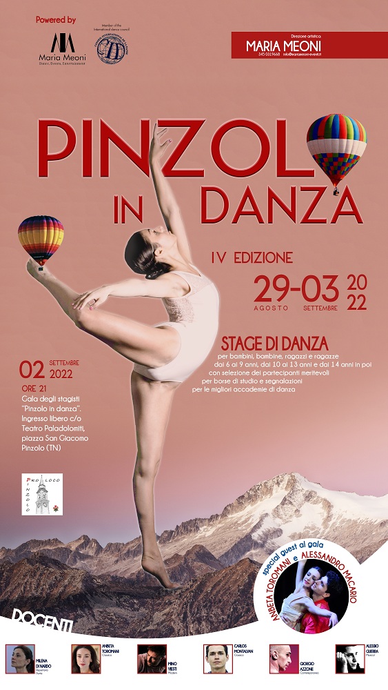 Infine Pinzolo in Danza, dal 29 agosto al 3 settembre, giunto alla quarta edizione con gli ospiti Carlos Montalvan, Milena Di Nardo, Alessio Guerra, Giorgio Azzone, Anbeta Toromani, Mino Viesti e la serata di gala del 2 settembre, al Teatro Comunale Paladolomiti, con i protagonisti Anbeta Toromani ed Alesssandro Macario.